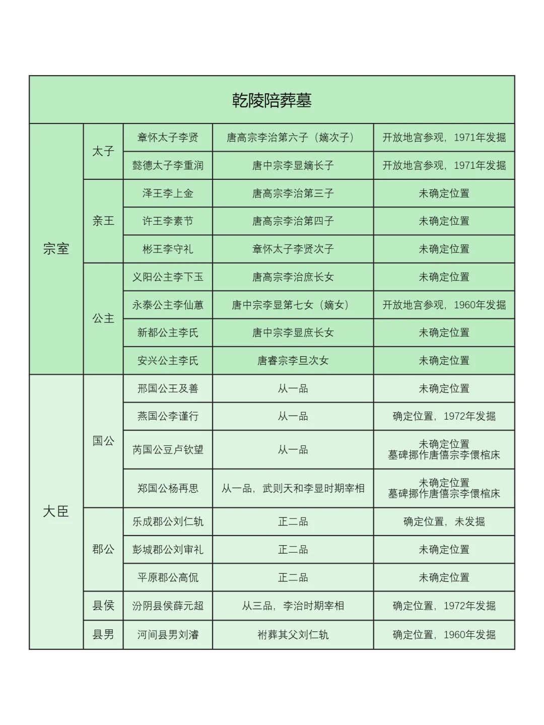 经1960年代文物部门田野调查确认,陪葬+祔葬乾陵者18人如下(史书记载,具体人数未知):