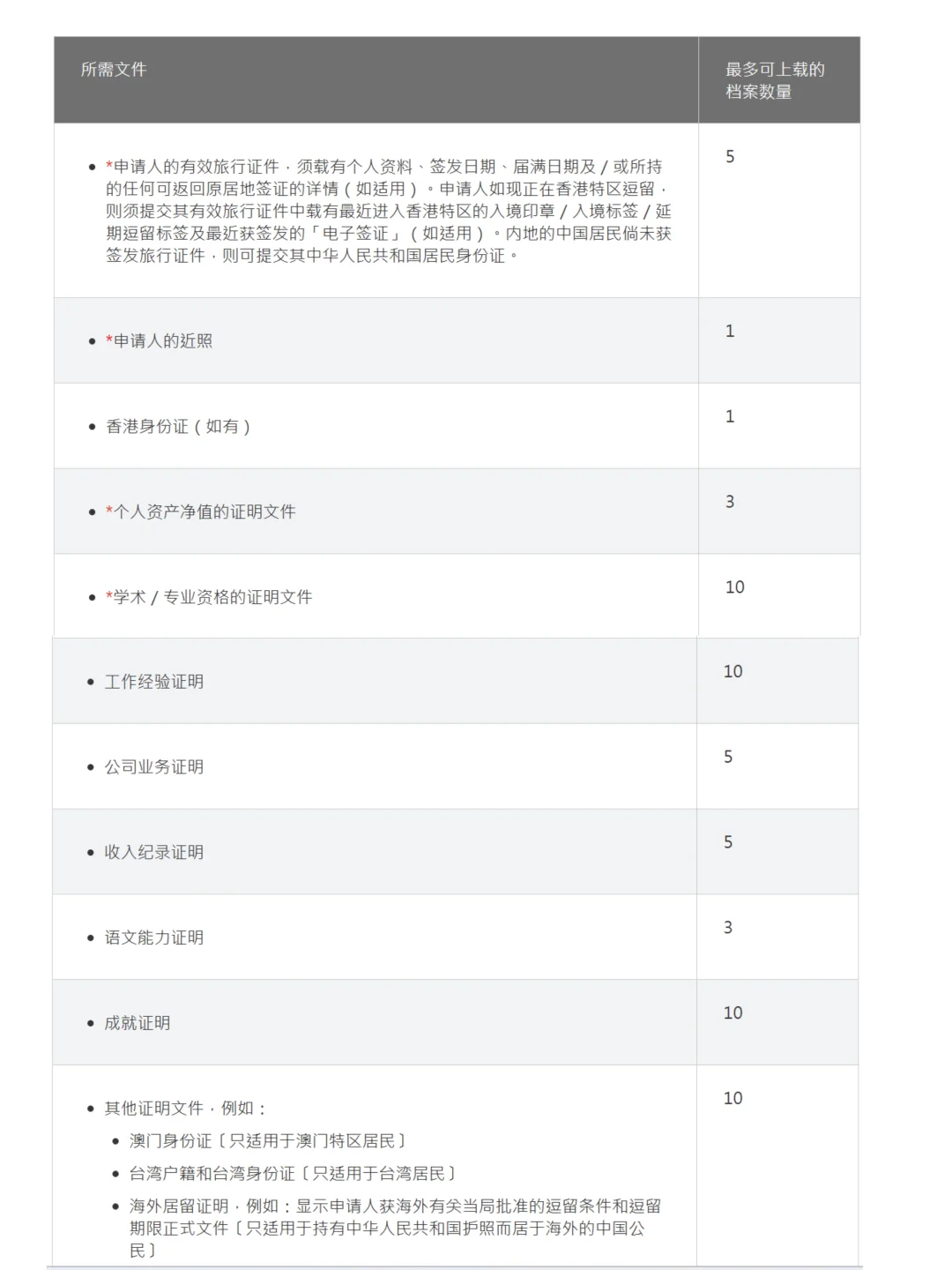 准备好材料以后就可以登录页面线上填表申请了(见图2页面往下拉就能看到),我用的谷歌浏览器,还比较流畅,填表及上传材料全程大概1-3小时不等,差异在个人的陈述部分,其实就是写为什么要批给你,逻辑上写清楚你很优秀、你能为香港创造价值就好,天花乱坠也没用的。