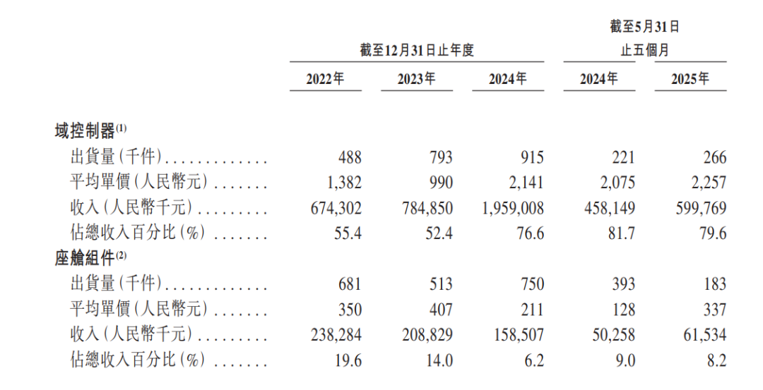 进一步拆解产品结构可发现,其域控制器的平均单价曾在2023年降至低点,随后在2024年大幅升高——推动这一变化的关键因素,正是高端产品的突破与快速放量。