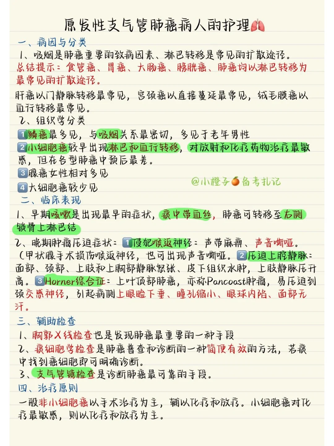 📎治疗措施:非小细胞癌以手术为主,辅以化疗和放疗;小细胞癌以化疗和放疗为主。