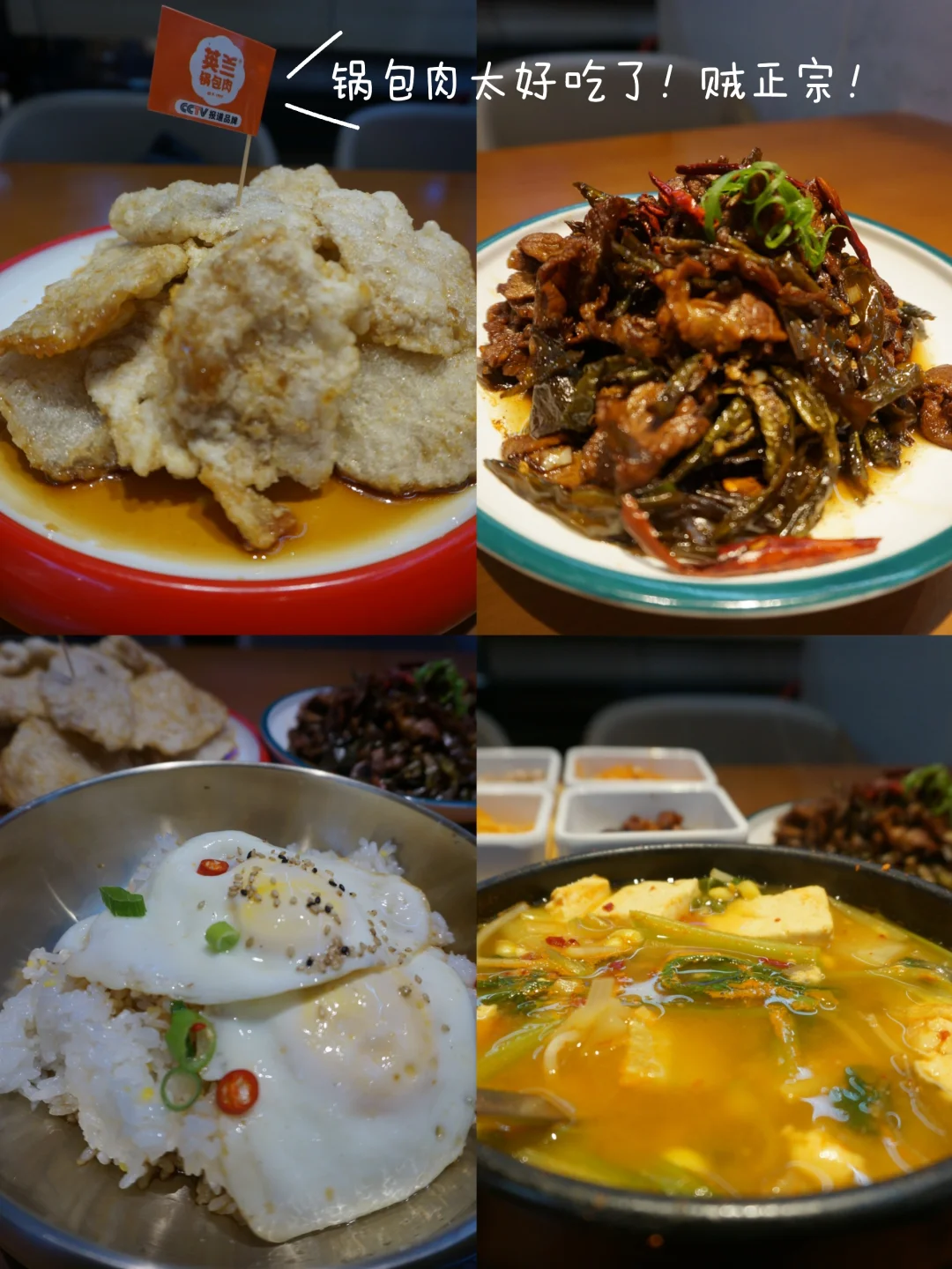 ➡️英兰朝族饭店:锅包肉一绝,干辣椒炒牛肉很香!不能提前预订,只能现场排队