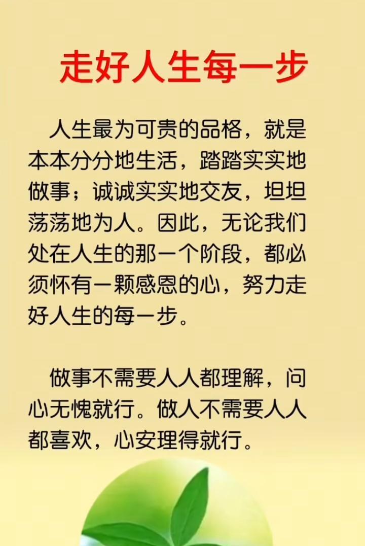 人生不是冲刺赛,而是耐力跑;每一步的重量,终会连成生命的刻度。 今天的每一步,都是未来惊喜的伏笔;跨出去的是脚步,沉淀的是底气。 不必羡慕别人的速度,你走的每一步,都在书写自己的节奏。