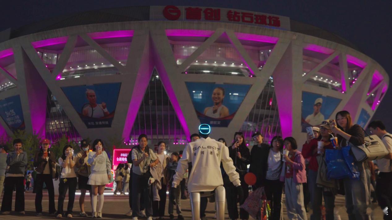 银河通用领衔亮相国网科技市集,将银河太空舱布局在赛场补给站区域,实现职业体育赛事与尖端科技的深度融合。现场,太空舱前排起长队,观众争相体验由Galbot自主完成的商品、饮品取送服务,不少外国观众更是驻足拍照、打卡合影,成为赛场上一道亮眼的科技风景。