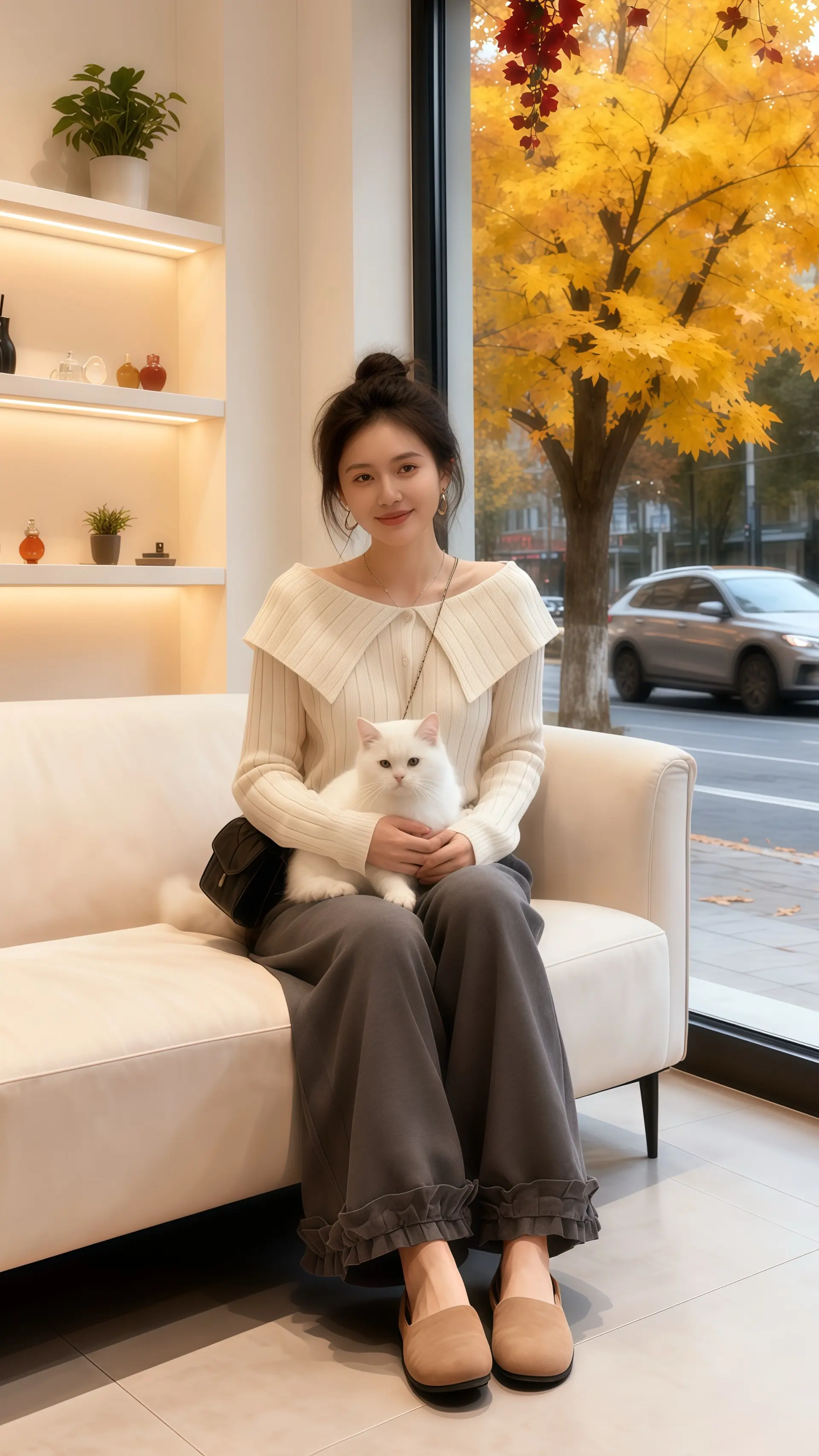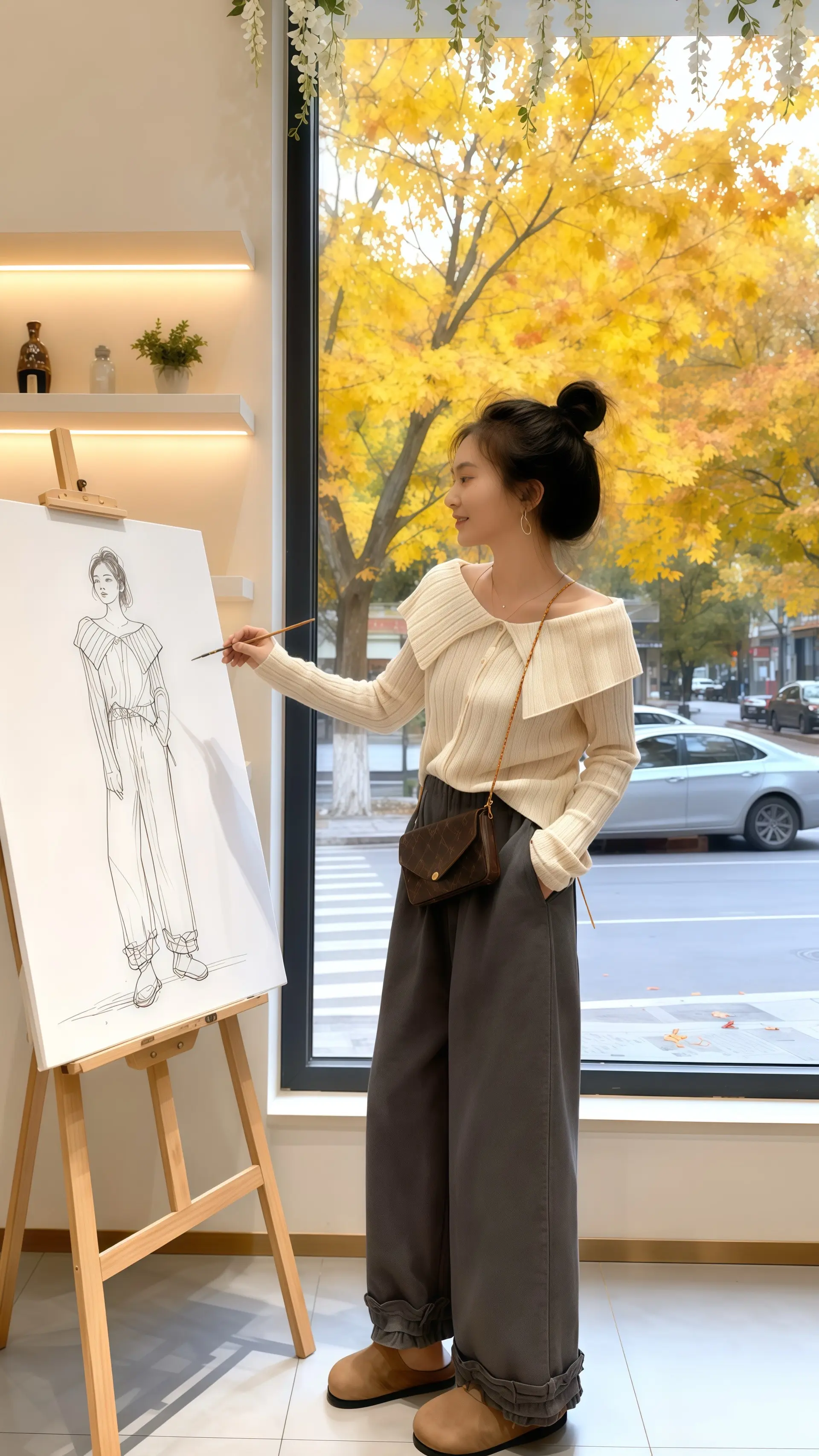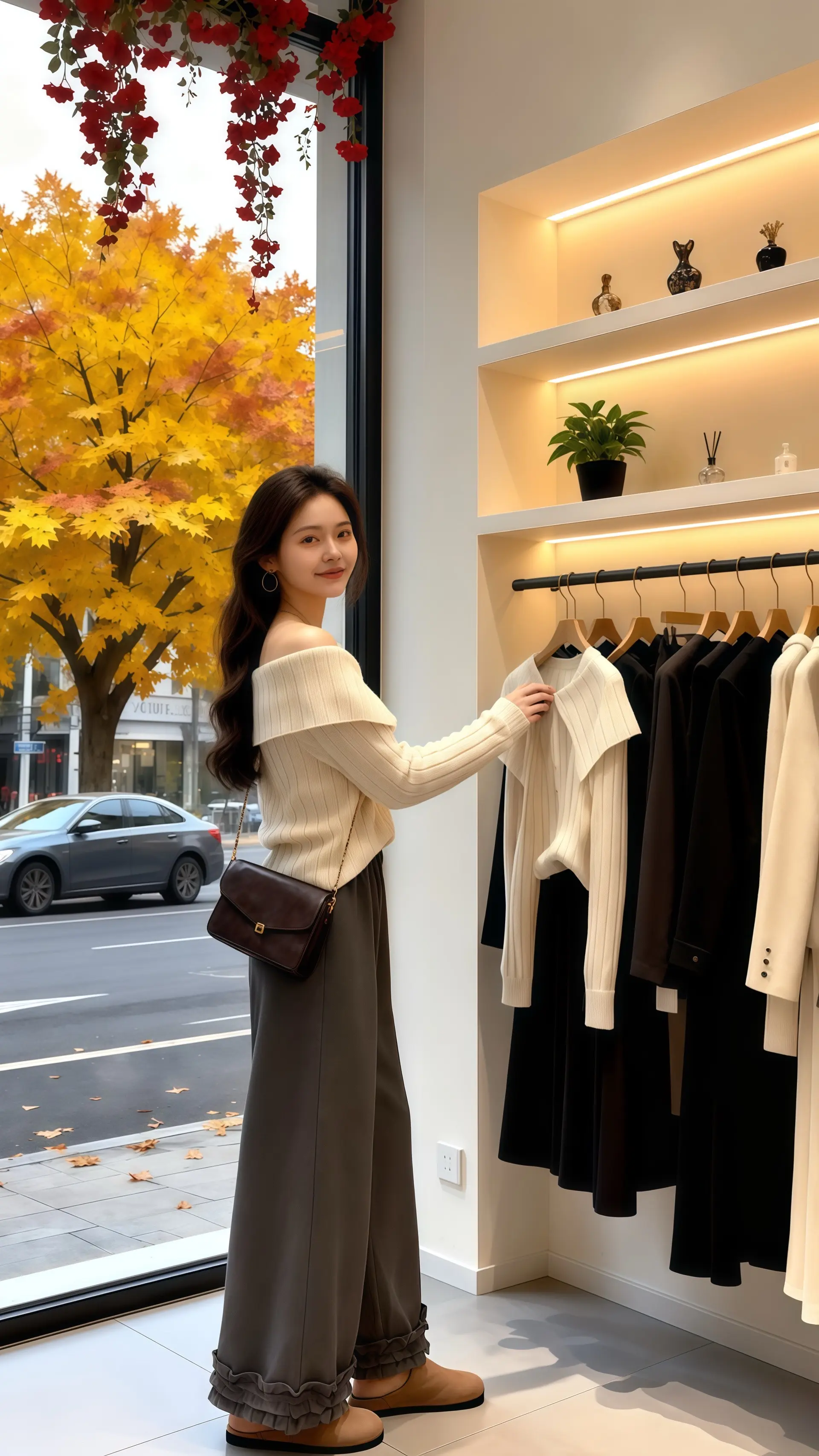 她穿着韩系设计感两件套,白色翻领针织衫勾勒出温柔气质,深灰色木耳边休闲裤又添几分随性松弛。在这家高级感女装店的落地窗前,她是秋日时尚的生动注脚。窗外金黄枫叶簌簌飘落,街道上车水马龙晕染出电影感的街景,店内暖光与绿植相映成趣。当韩系穿搭撞上秋日浪漫,每一处细节都在诉说:原来时尚可以如此优雅地融入季节,在这家女装店,她找到了属于自己的秋日风格密钥,把日常穿成了画报,让穿搭成为与秋天对话的浪漫语言。