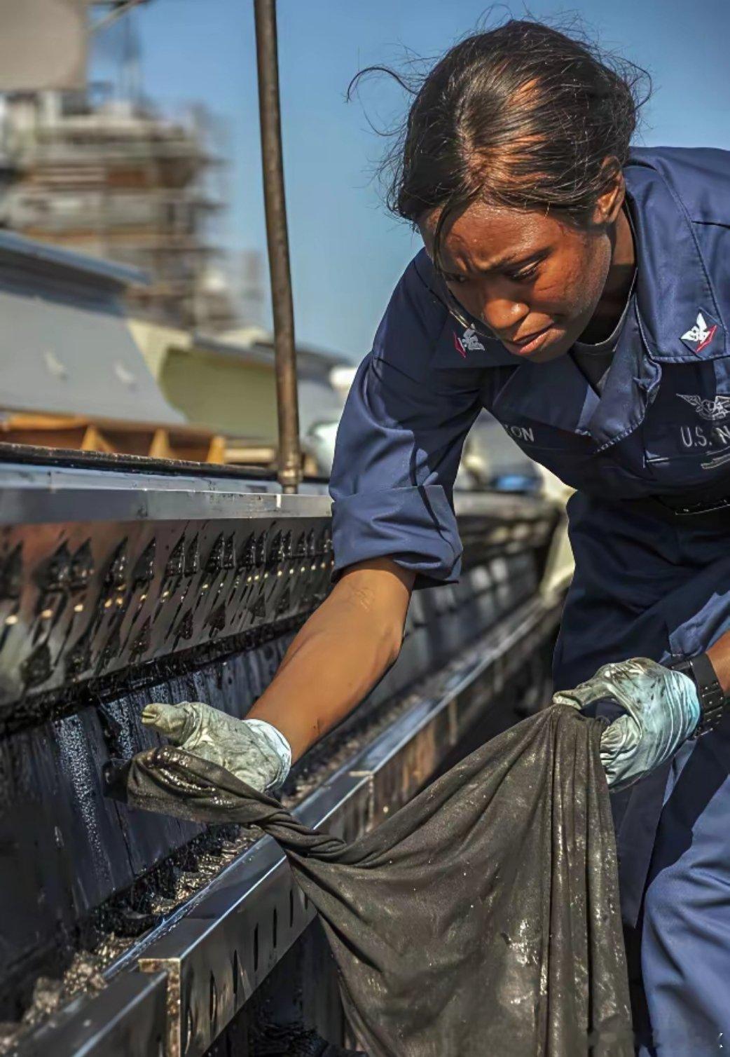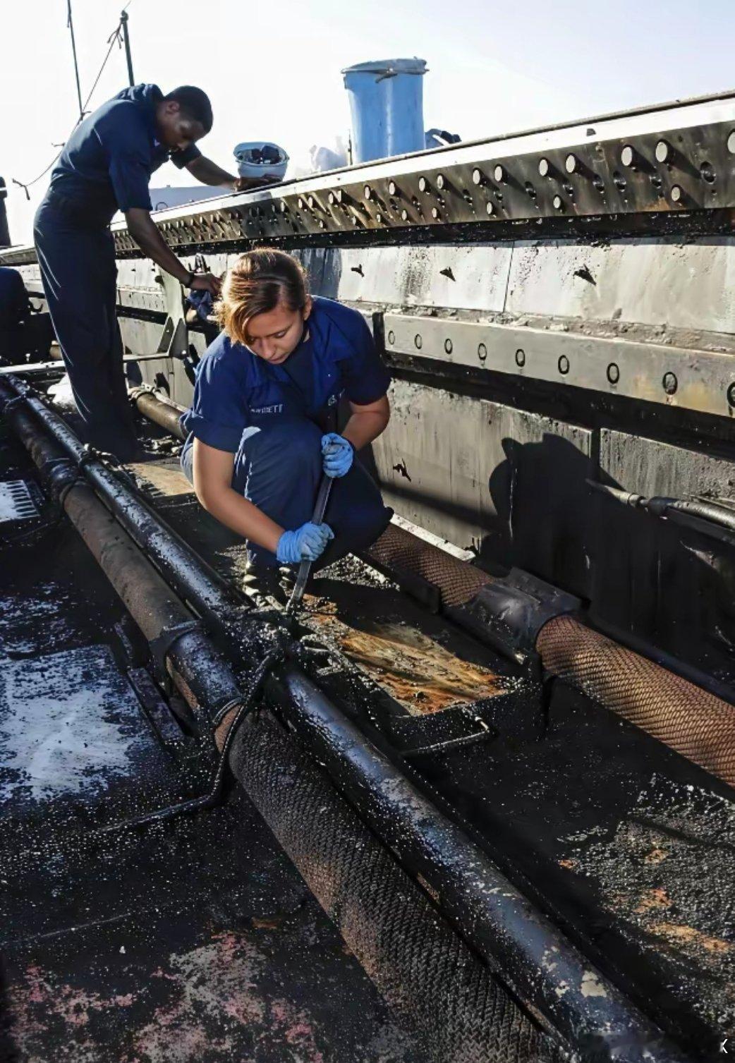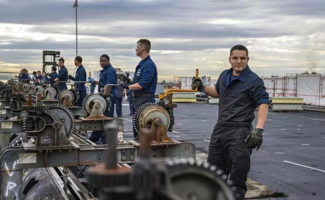 美国航母蒸汽弹射器的维护人员,机油、铁锈、污渍,浓浓的工业赛博朋克风扑面而来,这是机械之美,电磁弹射除了先进,一无是处。[doge]