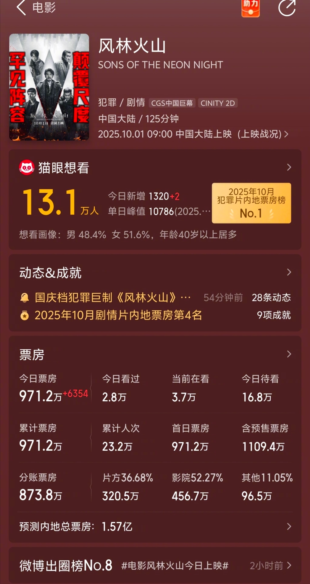 《风林火山》怎么回事啊?感觉电影院都不怎么排片。楼下的电影院今天只排了一场,时间还是10点以后。 ​​​