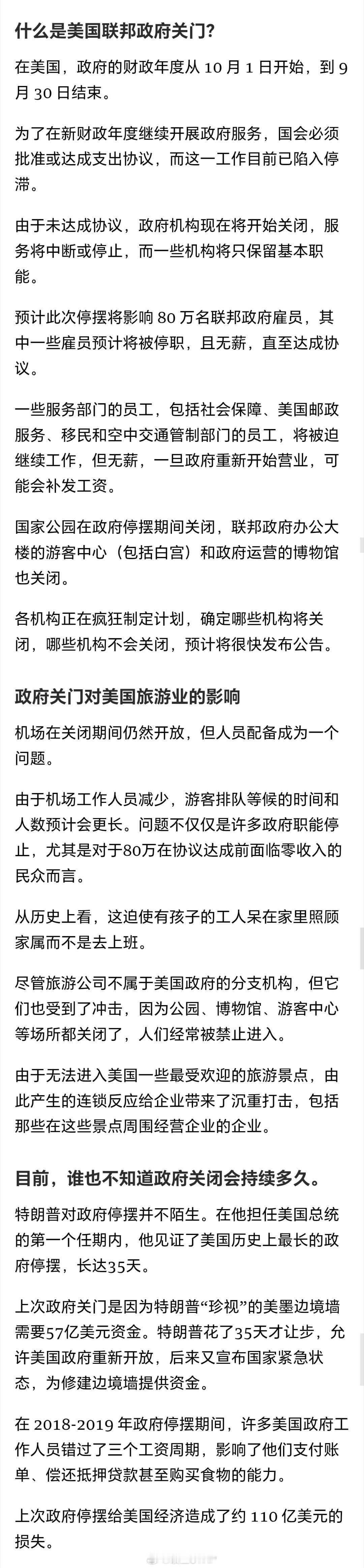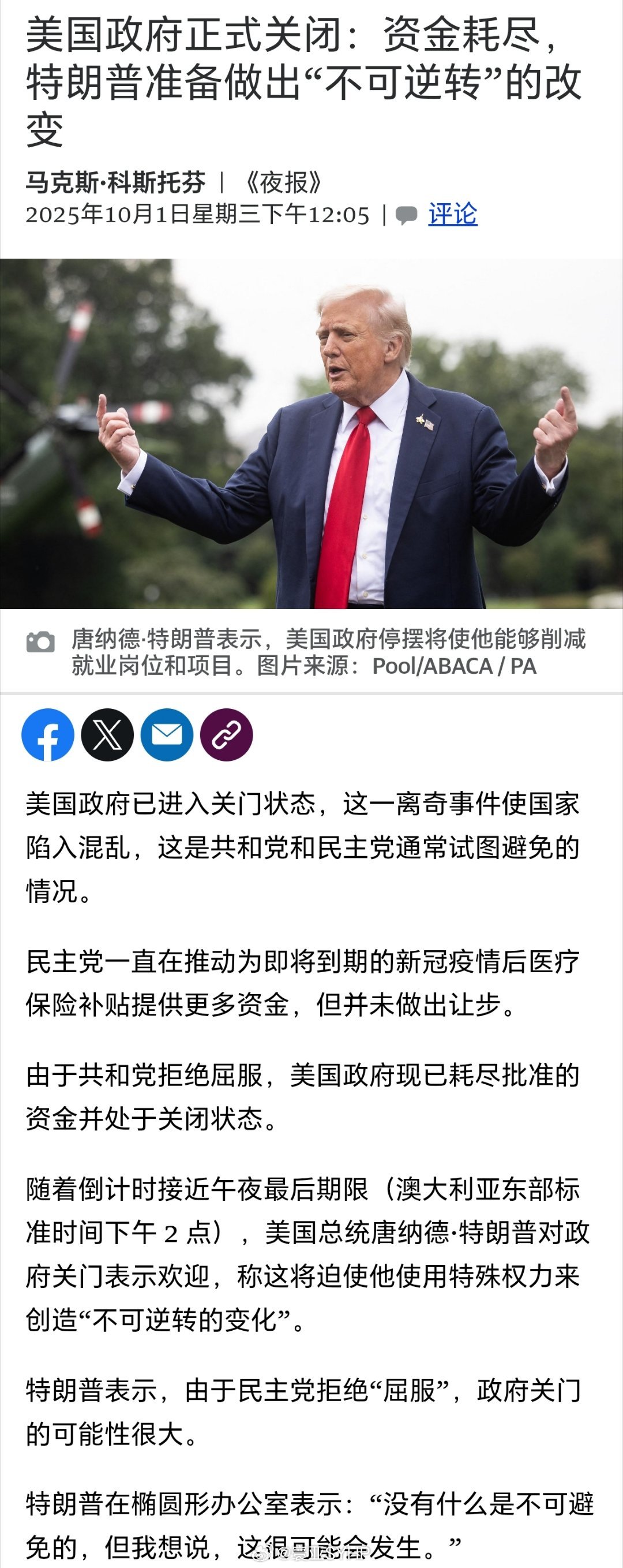 美政府关门美国政府正式关闭:资金耗尽,特朗普准备做出“不可逆转”的改变 ​​​