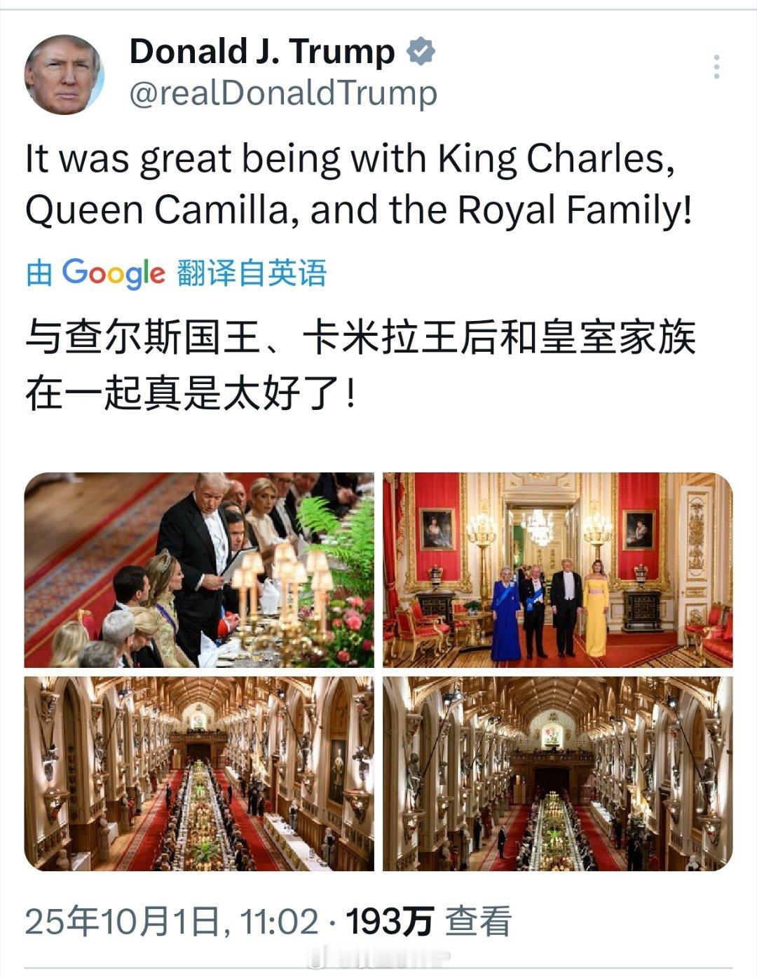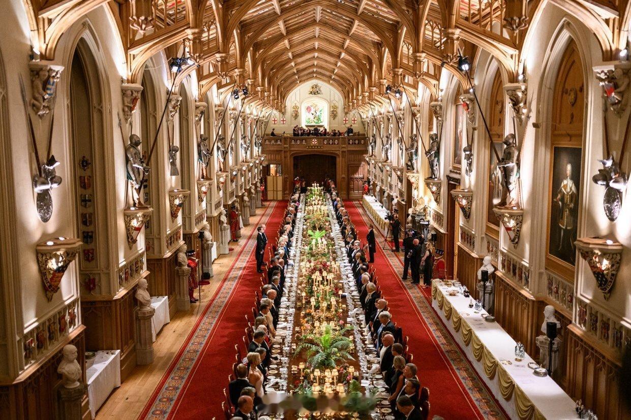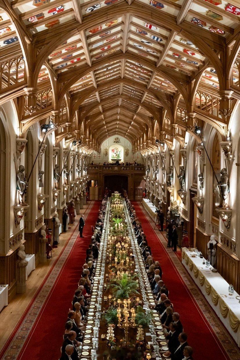 特朗普访问英国特朗普回忆对英国的访问,看起来,他对英国大排场的宴会情有独钟。