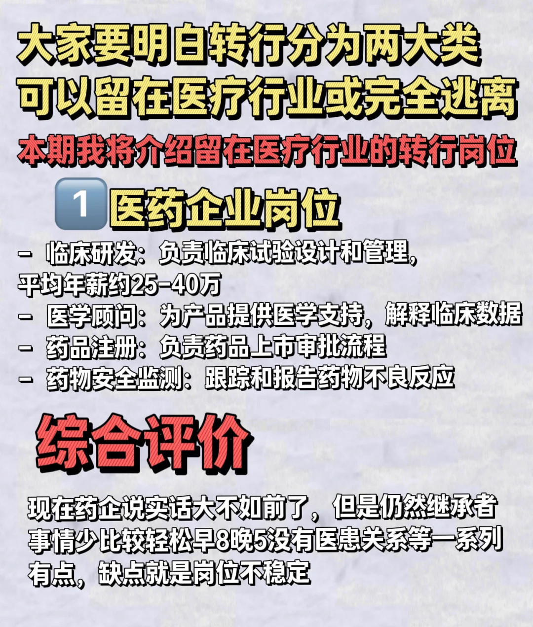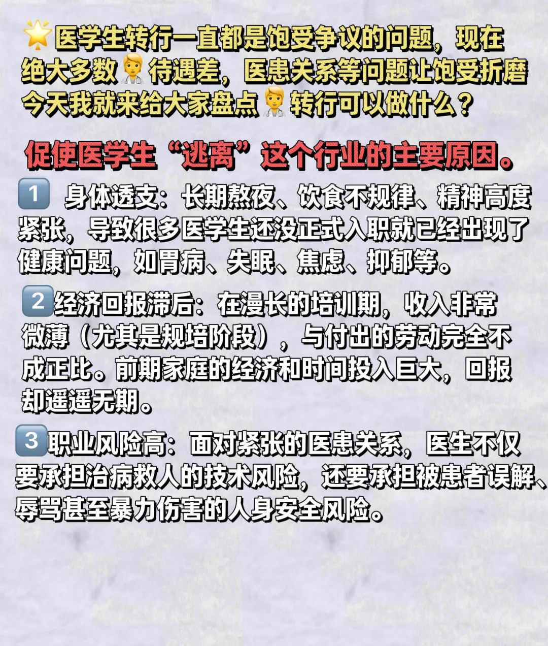 🌟医学生转行一直都是饱受争议的问题,现在绝大多数🧑⚕️待遇差,医患关系等问题让大家饱受折磨,今天我就来给大家盘点🧑⚕️转行可以做什么?