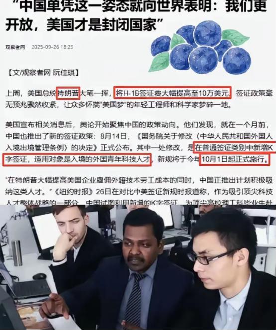 我们拼了四十多年,好日子刚开头,凭什么让外人来摘桃子? 中国将从10月1日起正式实行K签证政策,目的是吸引来自全球的高端人才。可巧的是,美国突然把H-1B签证的费用提高到10万美元,这一下,原本冲着美国去的人,很可能会把目标转到我们这边来! 中国从10月1日起要正式实行K签证政策,明眼人都看出来了,这步棋就是冲着全球高端人才来的。以前想吸引顶尖工程师、科研大牛,手续能绕好几个弯,现在K签证一落地,流程要简化不少,门槛也更贴合实际需求,就是要让真正有本事的人来得顺心、干得踏实。 可巧了,就在咱们放出这个信号的时候,美国那边突然把H-1B签证的费用飙到了10万美元。要知道,以前申请H-1B也就几千美元,现在一下翻了十好几倍,这哪是涨费用,简直是给想往美国去的人才设了道高门槛。 那些原本攥着简历、盯着美国硅谷岗位的年轻人,看到这10万美元的费用,心里肯定得犯嘀咕。去美国工作,本来就想着挣点辛苦钱、拼个好前程,现在光签证费就够普通人攒大半年的,再加上美国房租、生活成本,这笔账怎么算都不划算。 他们转头一看,中国这边不仅有专门的K签证政策,还有实实在在的机会。新能源领域里,中国的光伏、储能企业正缺顶尖的研发人才,给出的薪资待遇不比国外低;人工智能赛道上,从算法优化到应用落地,到处都是能施展才华的舞台;就连生物医药这种高精尖领域,国内的创新药企也在砸钱建实验室、引团队,就盼着有真本事的人来一起干。 以前总有人觉得,高端人才都往欧美跑,是因为那边平台好、资源多。可现在不一样了,中国这几年在基础科研上的投入逐年增加,大科学装置从北京正负电子对撞机到合肥同步辐射实验室,再到上海光源,一个比一个先进。这些硬件设施,就是吸引人才的硬底气。 还有生活成本这事儿,美国硅谷一套普通公寓月租得四五千美元,换成人民币就是三万多,而中国的杭州、成都这些新一线城市,同样的预算能租到带阳台的大户型,通勤时间还短。对有家庭的人才来说,孩子上学也方便,国内现在很多城市都有国际化学校,双语教育跟得上,不用为了孩子读书再折腾。 美国这次涨H-1B费用,说白了就是在筛选“高付费能力”的人才,可真正的高端人才,看重的不是能不能付得起签证费,而是能不能实现价值。有个做芯片设计的工程师,之前一直在美国某大厂工作,今年本来想申请H-1B续签,看到10万美元的费用后直接改了主意。他说中国现在正在大力发展半导体产业,很多企业都愿意给核心岗位放权,还能接触到从设计到量产的全流程,这种机会在美国很难得。 咱们的K签证政策,不光是简化流程,还考虑到了人才的后顾之忧。比如配偶可以申请随行签证,孩子上学能享受当地的教育资源,甚至连人才的社保、医疗这些细节都有配套政策。有个搞人工智能的专家,上个月刚通过K签证来深圳工作,他说最打动他的是,政府不仅帮他解决了办公室选址,还对接了当地的产业链资源,让他的研究成果能快速落地。 其实这些年,已经有不少海外人才开始“回流”。2023年的数据显示,中国留学回国人员数量已经连续多年增长,其中硕士以上学历的占比超过六成。这些人里,有搞新材料研发的,有做金融科技的,还有深耕文化创意领域的,他们带回的不仅是技术和经验,还有国际视野。 美国涨H-1B费用,等于是把一部分人才推向了中国。但咱们也不能光靠别人“犯错”,更要靠自己的实力留住人才。比如在科研经费管理上,国内现在正在推进“包干制”,让科研人员有更多自主权;在成果转化上,很多高校都建立了技术转移中心,帮助人才把论文变成产品。 有个在苏州做生物医药的团队,带头人是从美国回来的博士,他们通过K签证落地后,当地政府不仅给了启动资金,还帮他们对接了医院的临床试验资源,不到一年时间,他们研发的一款抗癌新药就进入了二期临床。这种“来了就能干,干了有回报”的环境,才是吸引人才的关键。 咱们拼了四十多年,好日子刚开头,不是要把外人拒之门外,而是要让真正有本事的人跟咱们一起把蛋糕做大。K签证政策就是一个窗口,让全世界看到中国的机会,也让中国能吸纳更多全球智慧。 美国涨H-1B费用,或许会让一些人犹豫,但对中国来说,这是一个机遇。只要咱们把政策落实好,把环境营造好,那些原本冲着美国去的人才,自然会把目光转向中国。毕竟,对高端人才来说,哪里有机会,哪里就能实现价值,哪里就是他们的选择。 官方信源:中国政府网《外国人来华工作许可管理办法(修订版)》(含K签证相关配套政策解读)