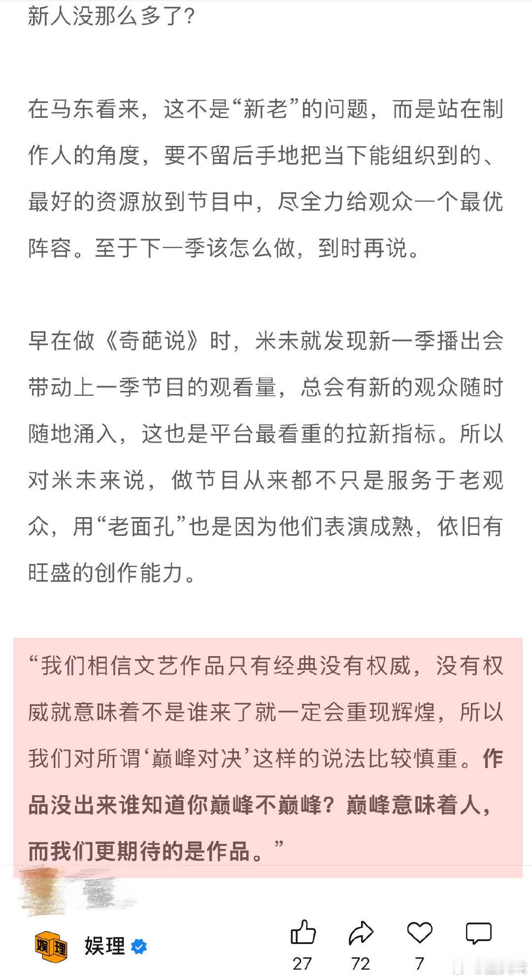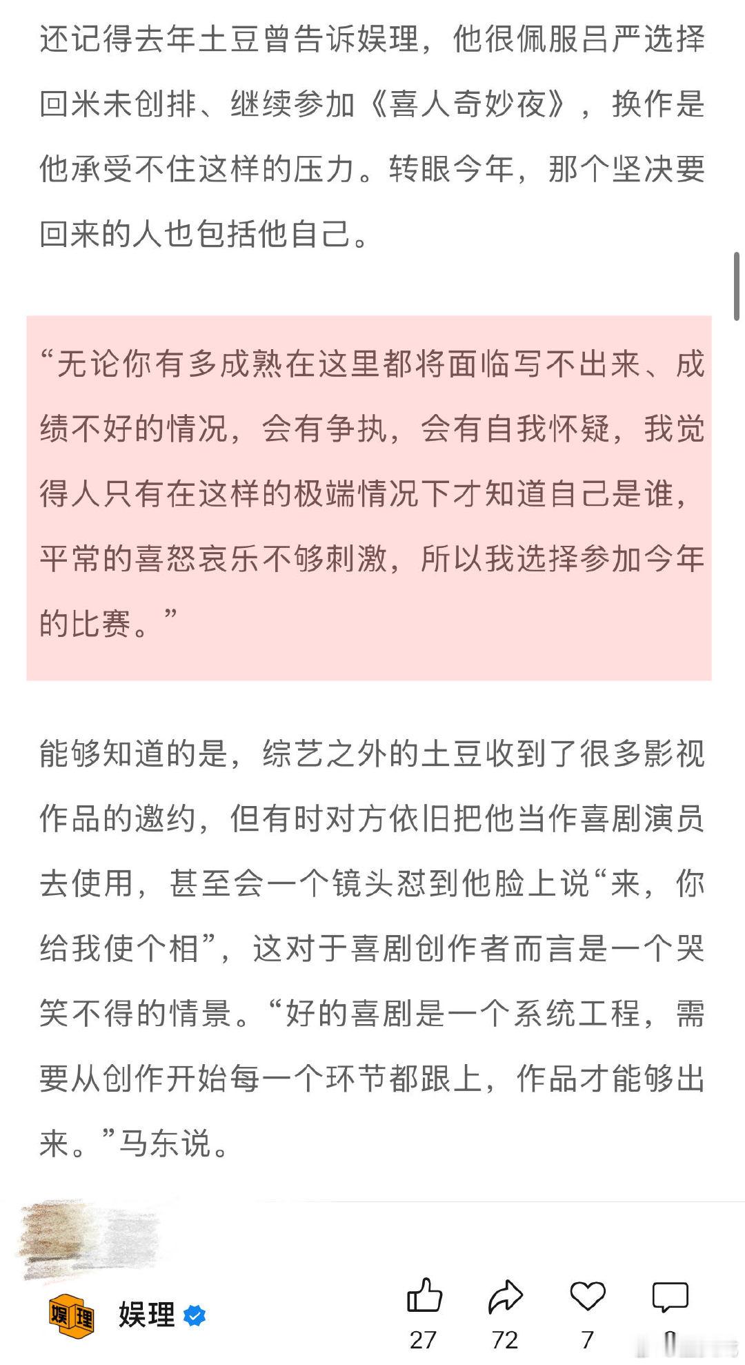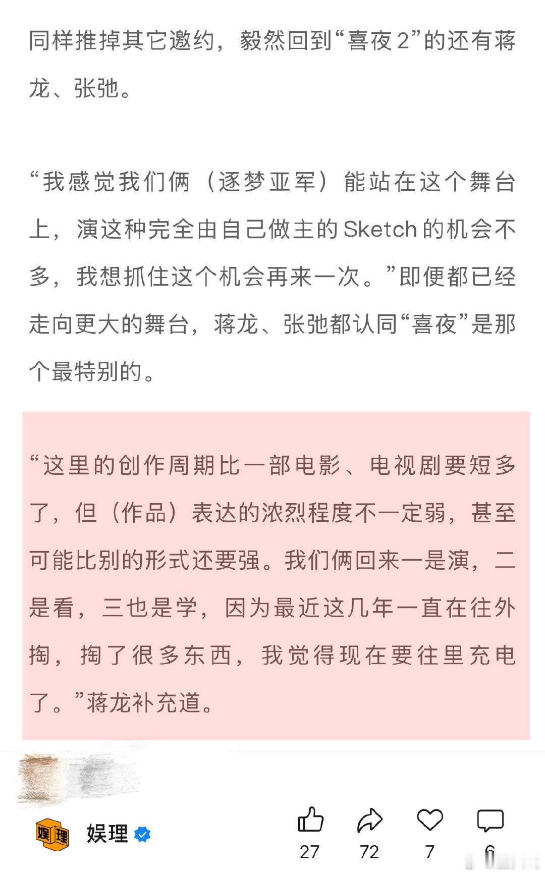 土豆刘旸蒋龙张弛回应为何回喜夜2 技能五子棋在这个时代是对的 从编到演,米未将绝大部分决定权放到演员手里。用“卷王”刘旸的话说,“符合我们的喜剧审美,并且我们说话有主导权的项目现在越碰越少。”今年《喜人》节目组第一次发出邀约时,刘旸就回了两个字:“绝不。”至于为什么最后会来,打动他的还是作品…大咖茶话会↓