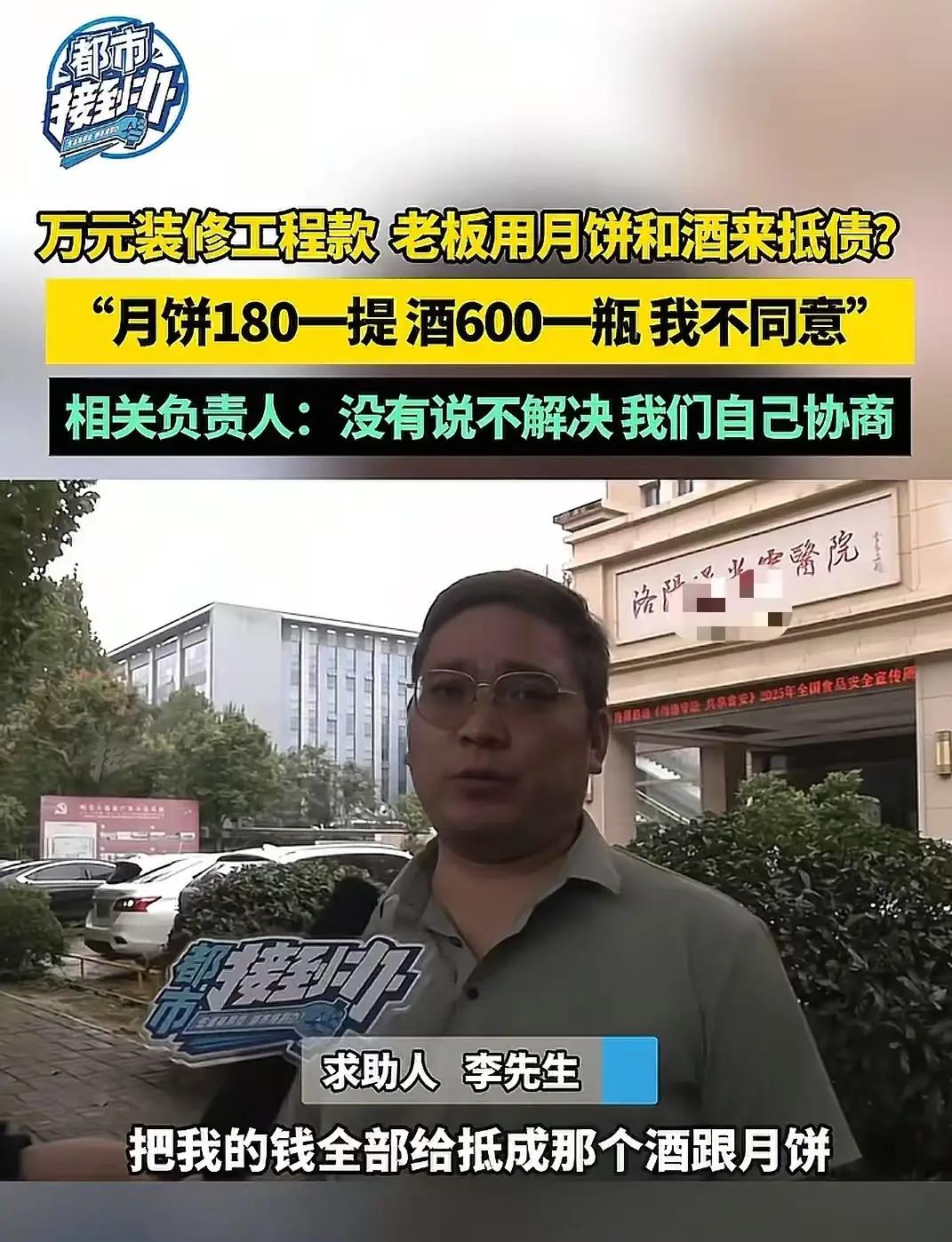 “万万没想到”!河南洛阳icon,男子给中医院装修,结果对方说工程款用月饼icon和酒来抵债!男子:“月饼180一提,酒610一瓶,我怎么吃得起?况且工人只要钱啊!”网友:我以后去你们医院看病,住院押金可以交月饼和杂牌白酒吗? 这位师傅前段时间接了当地一家中医院的装修活儿,辛辛苦苦把活干完,到了该结工程款的时候,医院却给了他一个“意想不到”的答复:钱没有,想用月饼和白酒抵账。 师傅拿着医院给的“抵债清单”犯了难。清单上的月饼,一提就要180元,比市面上普通月饼贵了好几倍;白酒更夸张,一瓶标价610元,可他连这酒的牌子都没听过,说是“杂牌酒”也不为过。“我一个干装修的,平时吃碗面都要算着钱,哪吃得起这么贵的月饼?”师傅无奈地说,最关键的是,跟着他干活的工人,等着这笔钱交房租、给孩子交学费,“工人要的是现金,不是这些既贵又用不上的东西啊!” 他多次找医院协商,希望能拿到现金,可对方始终坚持用实物抵债,说“要么收下这些东西,要么就再等等”。一边是医院的“强硬态度”,一边是工人催着要工资的电话,师傅夹在中间,急得睡不着觉。 目前,这位装修师傅还在和医院协商,希望能尽快拿到现金工程款。大家也在关注着事情的进展,毕竟谁都不希望,辛苦付出的劳动,最后换来的却是一堆“吃不起、用不上”的抵债品。而医院作为救死扶伤的场所,更该守住诚信底线,别让“奇葩抵债”寒了劳动者的心。