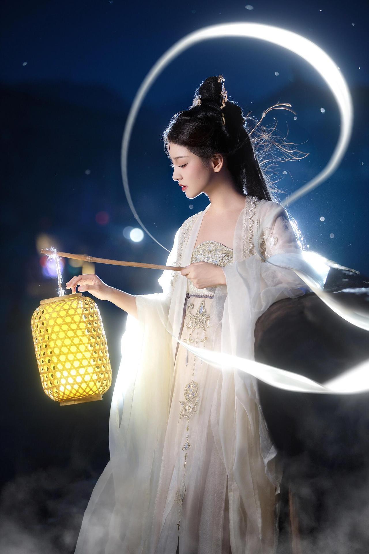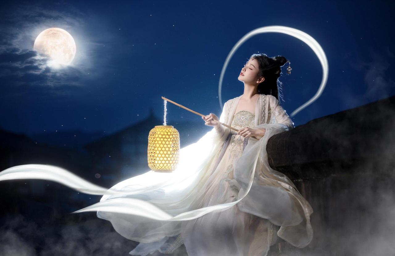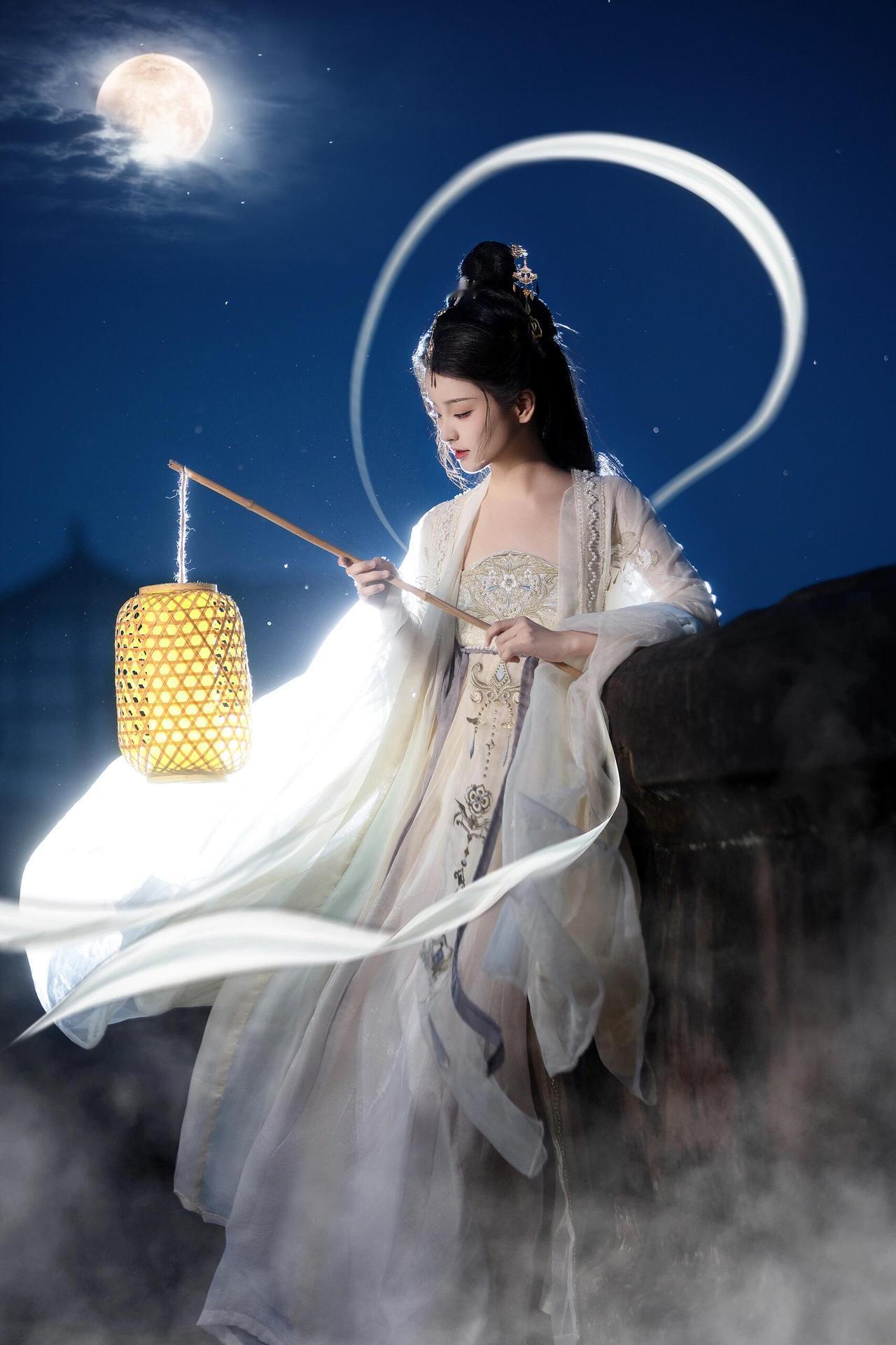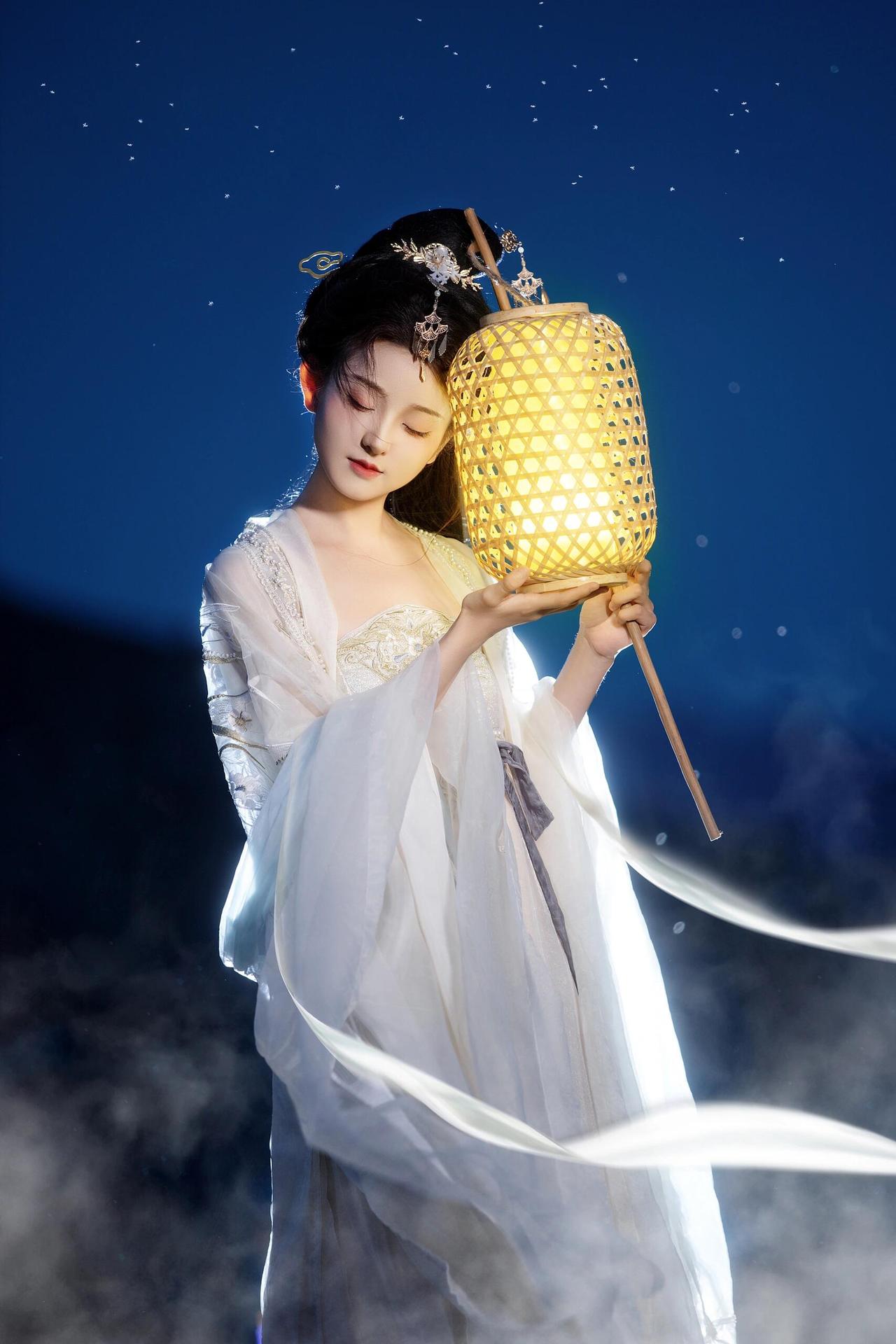 这组照片,把中秋拍成了一场瑰丽的梦。梦里有夜,有月,有提着灯笼的仙子,还有我们对中秋所有美好的想象。 背景的夜空处理得很妙,不是一片死黑,而是有层次的蓝,像中秋夜那种深邃又带着点温柔的天色。光绘的月是梦的引线,带着点超现实的美感,一下子就把人拉进了童话般的中秋意境里。 灯笼是梦的“锚点”,暖黄色的光很治愈,让人想起中秋夜家里那盏等你回家的灯。女子的古装不是那种厚重的戏服,而是轻薄飘逸的,走起路来带风,像月光下的云,又像中秋夜的雾,缥缈又真实。 最难得的是情绪的传递,每张照片都有自己的情绪,或思念或宁静或向往,却又统一在中秋的主题下。这组照片告诉我们,古风肖像可以很有烟火气,也可以很有仙气,关键是能不能抓住节日的魂——中秋的魂,就是月,是念,是团圆的盼头。