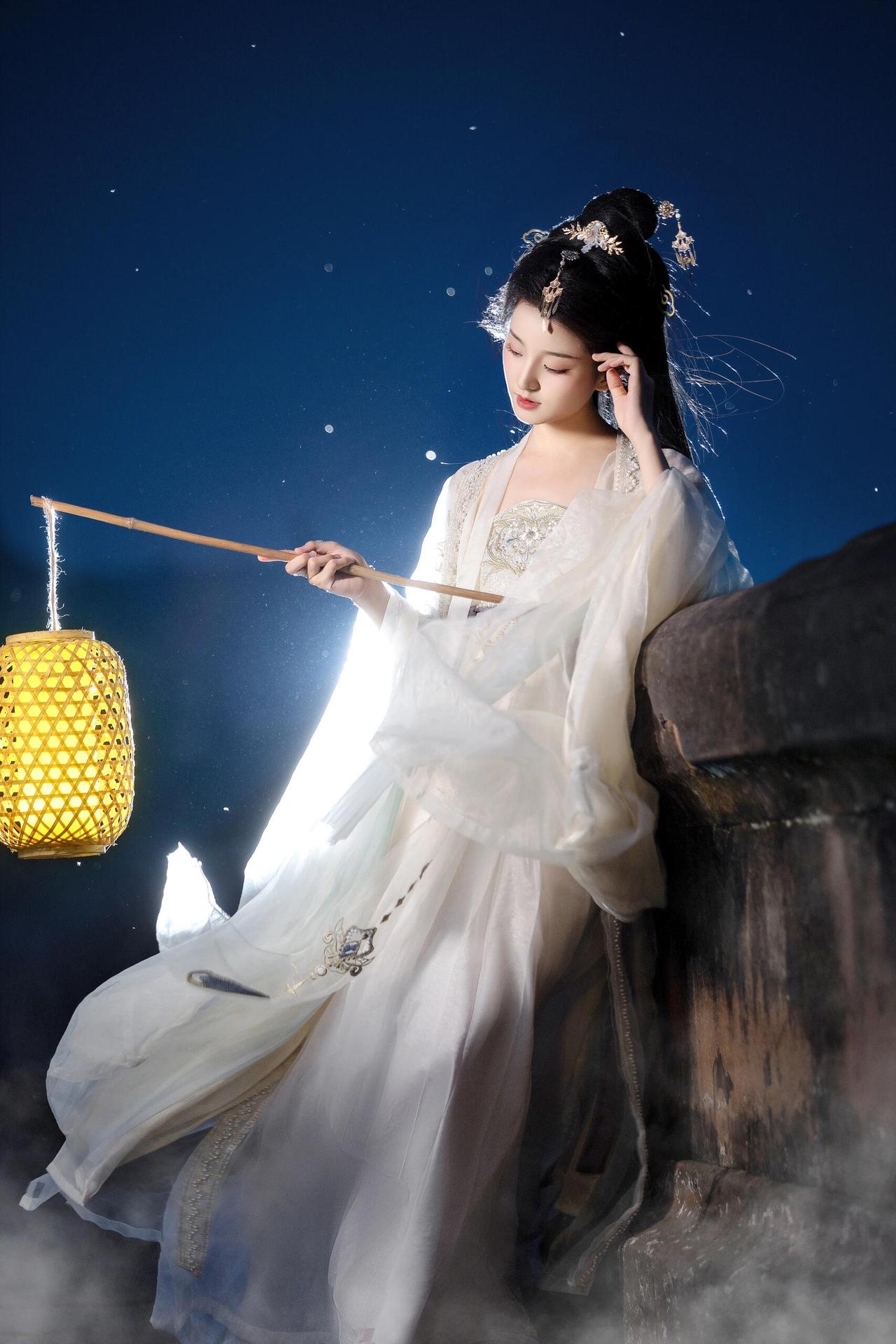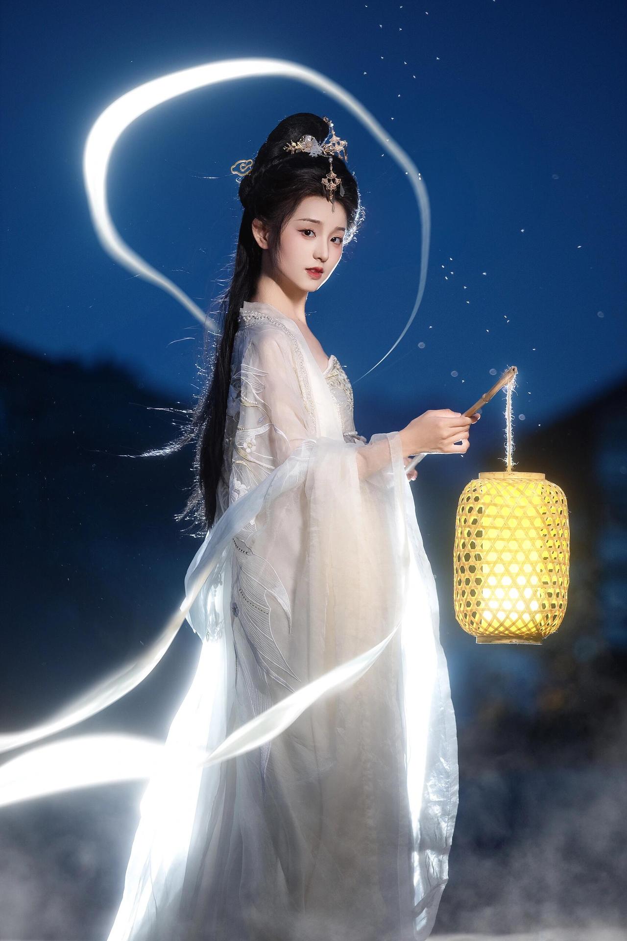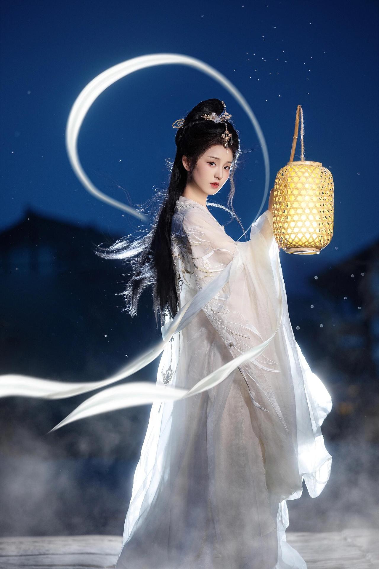 这组照片,把中秋拍成了一场瑰丽的梦。梦里有夜,有月,有提着灯笼的仙子,还有我们对中秋所有美好的想象。 背景的夜空处理得很妙,不是一片死黑,而是有层次的蓝,像中秋夜那种深邃又带着点温柔的天色。光绘的月是梦的引线,带着点超现实的美感,一下子就把人拉进了童话般的中秋意境里。 灯笼是梦的“锚点”,暖黄色的光很治愈,让人想起中秋夜家里那盏等你回家的灯。女子的古装不是那种厚重的戏服,而是轻薄飘逸的,走起路来带风,像月光下的云,又像中秋夜的雾,缥缈又真实。 最难得的是情绪的传递,每张照片都有自己的情绪,或思念或宁静或向往,却又统一在中秋的主题下。这组照片告诉我们,古风肖像可以很有烟火气,也可以很有仙气,关键是能不能抓住节日的魂——中秋的魂,就是月,是念,是团圆的盼头。