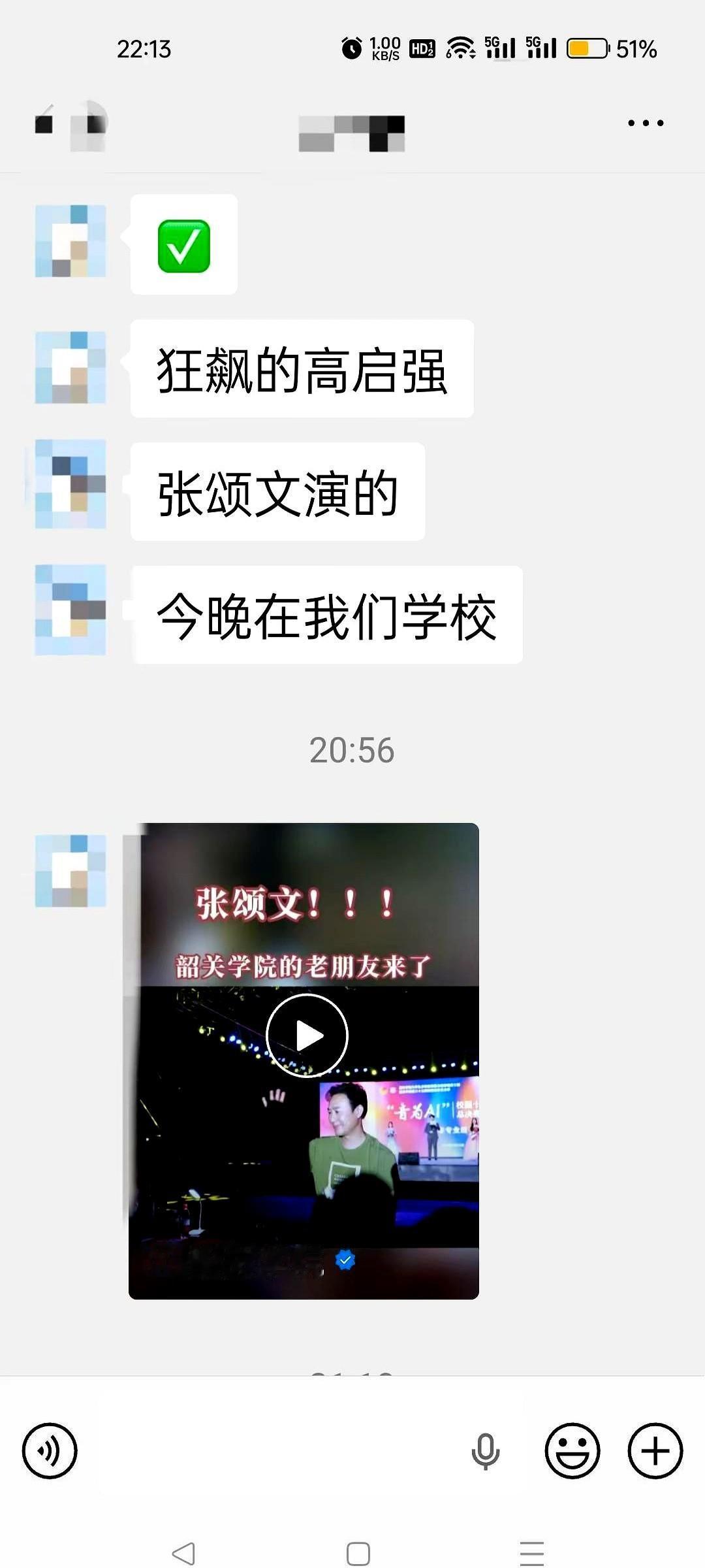 张颂文回母校韶关学院,没带热搜套路,带了句“表演不是模仿生活,而是理解生活”。 这话听着像鸡汤,但他说的时候,眼里有光,台下学生笑得像刚逃了晚自习。 我没去过韶关学院,但我知道那种感觉——一个从你身边普通教室走出来的校友,突然站在讲台上,穿着皱巴巴的衬衫,讲自己当年怎么在排队时背台词,怎么在宿舍里对着镜子练哭戏。 不是光环加身,是带着泥土味的坚持。 很多人以为明星返校就是合影、签名、发微博,但张颂文不一样。 他即兴演了一段戏,不是炫技,是把当年老师教他的东西,原封不动还给了学生。 这像什么? 像老木匠回村,亲手给徒弟修了把椅子,不是送你一把新椅子,是告诉你怎么选木头、怎么握刨子。 我见过太多“励志讲座”,讲完就走,学生记不住一句。 但张颂文的那句话,有人偷偷录下来,发到朋友圈,配文:“原来成功不是靠运气,是靠看得懂生活。” 他没提流量,没提奖项,也没说“你们要努力”。 他只是说,别急着演别人,先学会看人。 这年头,能让人安静听完一场分享的明星不多了。 更难得的是,他没把自己当榜样,倒像回来看老朋友的学长。 校园活动最怕假,最怕用力过猛。 张颂文的这次回来,像一场久违的雨,不声不响,却把干裂的土,浇出了点绿意。