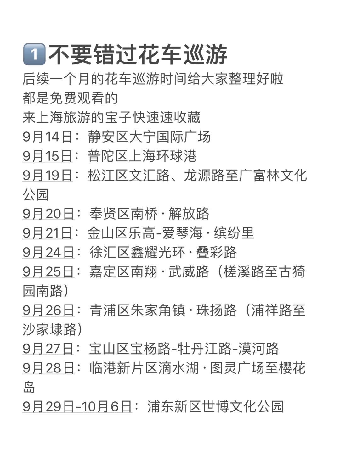 后续一个月的花车巡游时间给大家整理好啦,看图2~