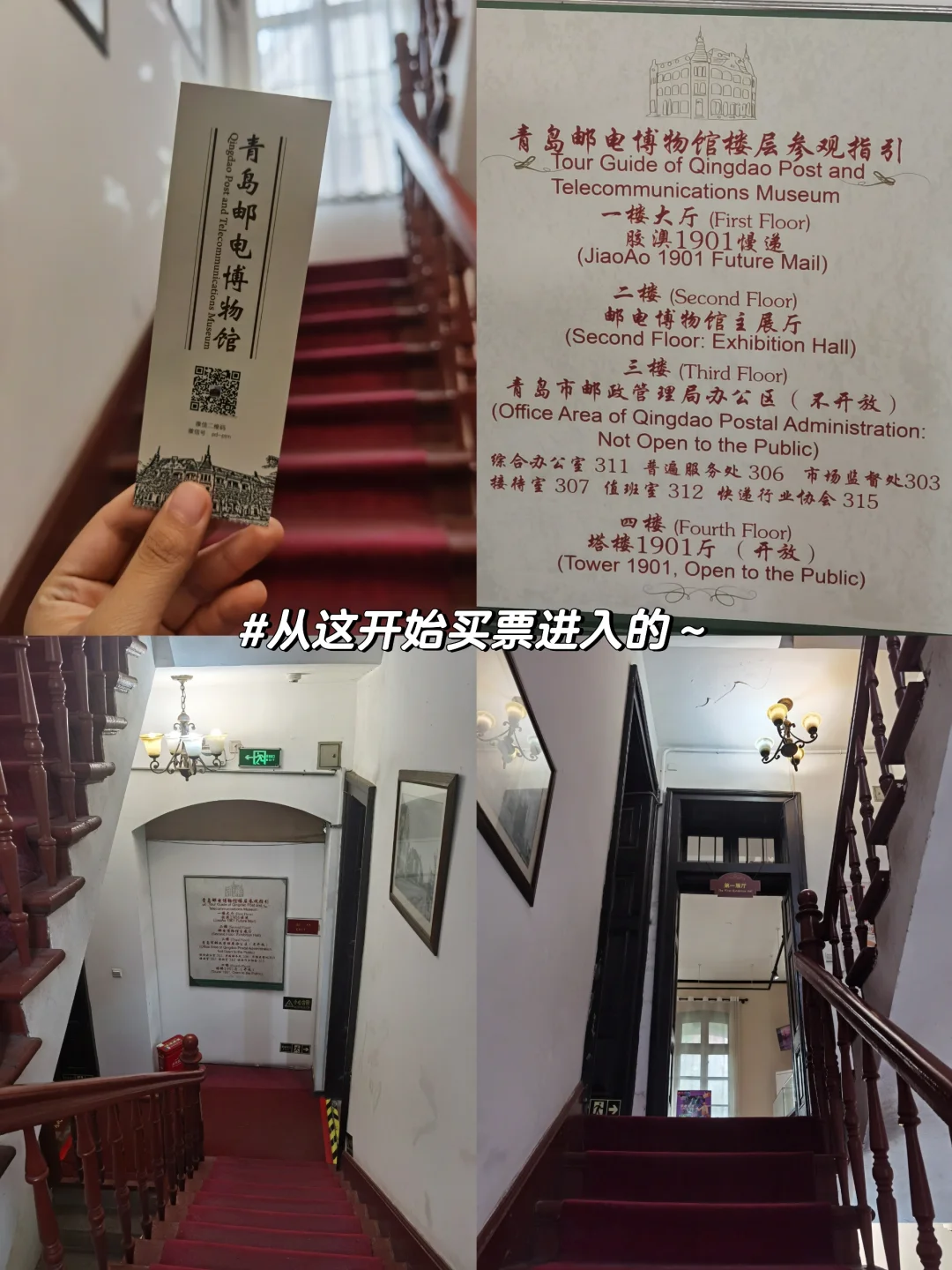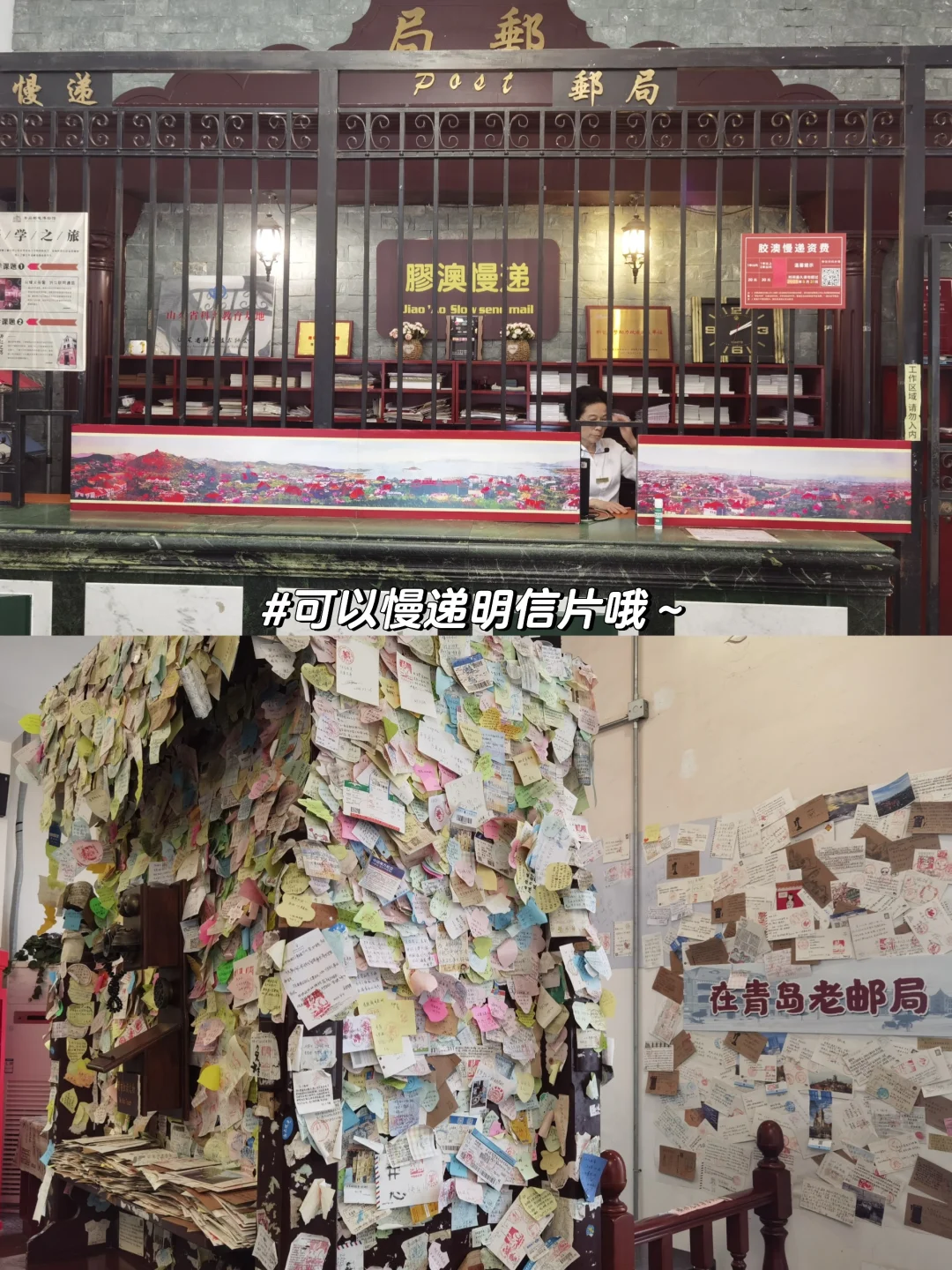 一楼陈列很多各国古董电话等,可拍照打卡📷!重点❗️一定带个本子,可以免费盖11个章,很好看!如果忘记带本子,有卖明信片的最便宜2-3元一张,可以买来盖!一楼还原了上世纪老邮局的场景“胶澳慢递”,可邮寄明信片送朋友~或者写给未来的自己!很推荐来一楼体验一下❗️