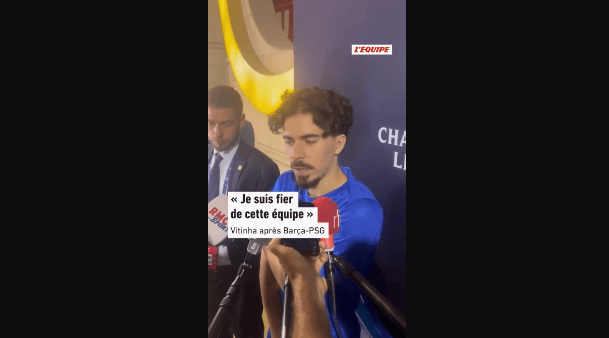 虎扑10月02日讯巴黎圣日耳曼中场维蒂尼亚在2-1逆转巴塞罗那的赛后,接受混合采访区采访。