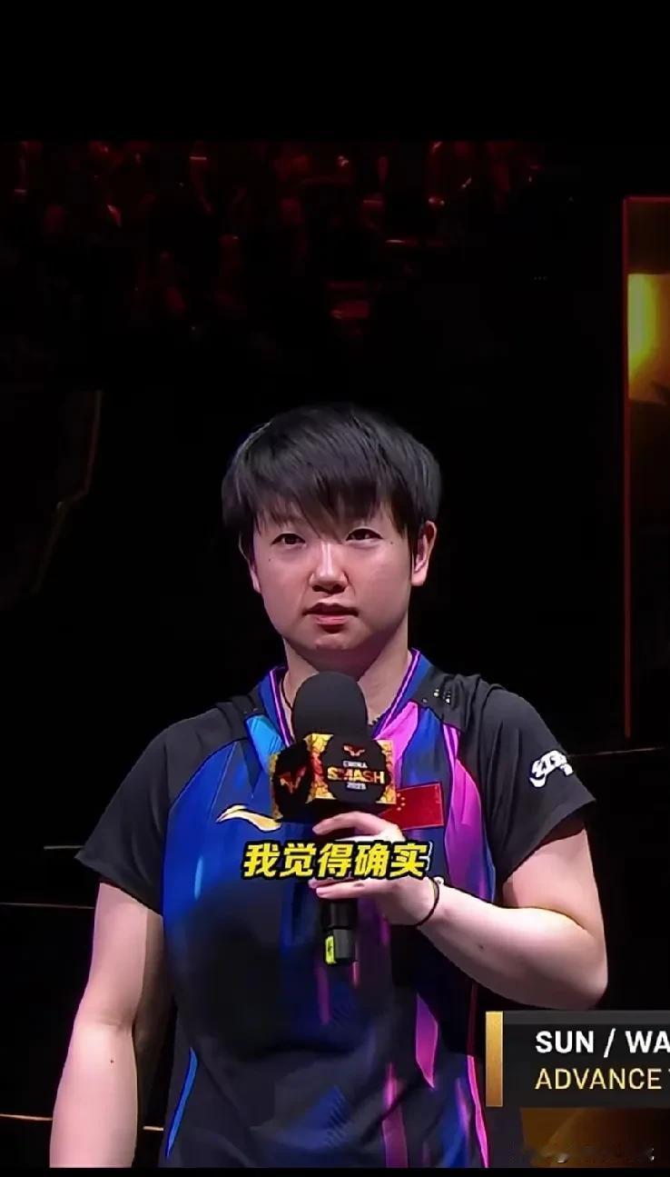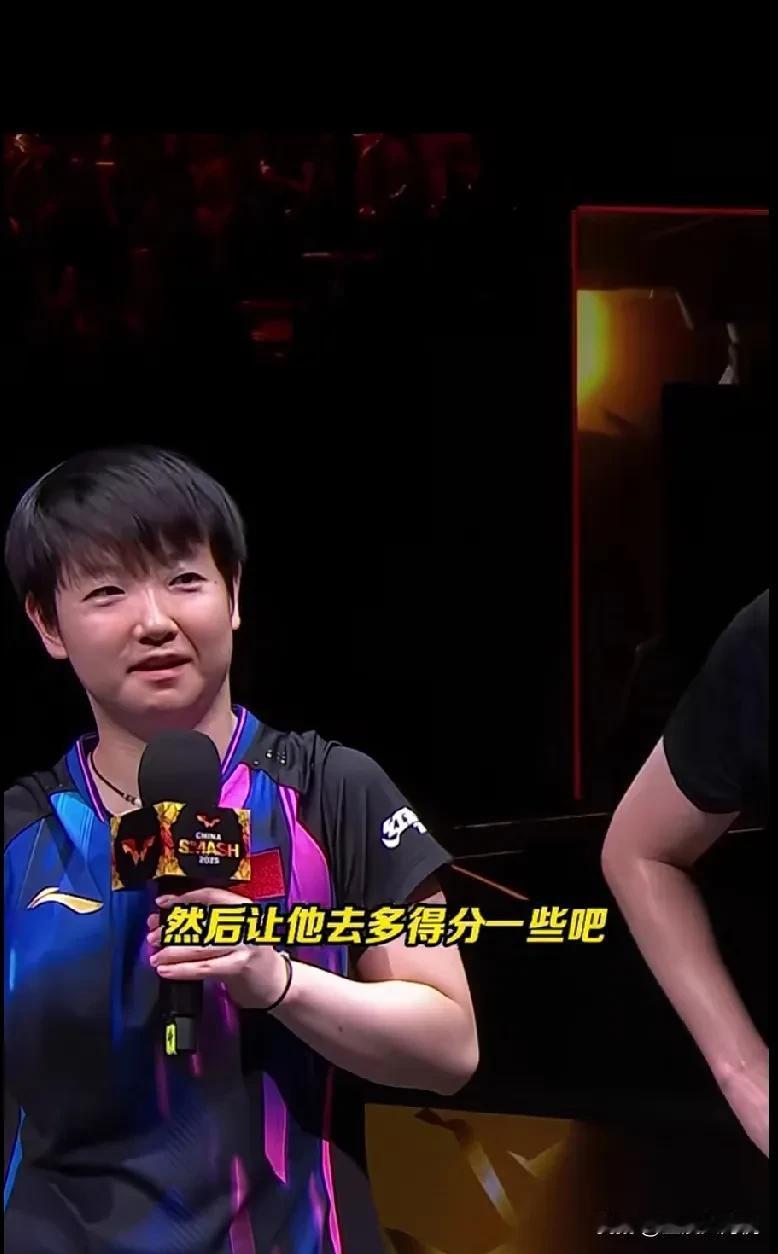 还得孙颖莎啊,大头不开心,拉着脸,莎莎几句话就搞定了, 大头乐的嘴角上扬! 刚刚看了这段采访不得不说莎莎情商好高啊, 莎莎在那说,然而大头站在一边手叉着腰,面无表情像受气虫一样站在那里,可能是因为白天遮挡球罚分的问题在生气, 然而莎莎在采访时,说她觉得大头今天在比赛的时候整体做的非常好,状态也非常好,三场比赛了,所以莎莎说以后她会多多做辅助,让大头多得分一些, 然而当大头听了莎莎这句话不住的嘴角就上扬了, 网友说,莎莎的格局,情绪价值绝对到位[憨笑][憨笑]只有她能把大头哄开心了[呲牙]