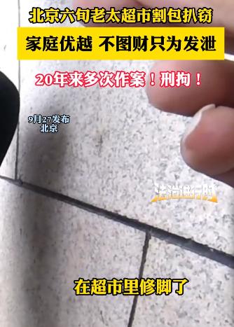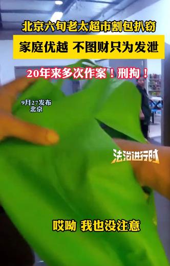 “真是离谱至极!”北京,一位67岁的老太太,在超市内多次趁其他老人挑选商品之际,用手中的刀片划破他们的背包进行盗窃,然而让人没想到的是,当警方将老太太拦截并进行询问时,她的回答却让人瞠目结舌!   清晨的北京某超市蔬菜区,刚上架的黄瓜还带着水珠,空气中混着泥土和果蔬的清新气,几位头发花白的老人正弯腰挑拣着食材。   人群里,67岁的黄某挎着个不起眼的布包,慢悠悠地在货架间穿梭,时而拿起番茄翻看,时而凑到萝卜摊前张望,看着和普通买菜的老人没两样。   可谁也没料到,这个看似平和的身影,口袋里藏着的东西,正酝酿着一场离谱的闹剧。   说起这事儿的起因,还得靠一位眼尖的小伙子。   当时他正在不远处选苹果,眼角余光瞥见黄某的动作有些古怪:她不像其他人那样专心挑菜,反而总用眼睛瞟着周围,手指在口袋里反复摩挲。   没过多久,黄某盯上了一位正低头选胡萝卜的阿姨,那阿姨背着个绿色帆布环保包,看起来鼓鼓囊囊的。   她趁阿姨弯腰扒拉菜叶的瞬间,黄某迅速从口袋里摸出一片薄薄的刀片,寒光一闪就凑了上去,手指灵巧得不像个老人,刀片在帆布上轻轻一划,就开了道小口。   “阿姨,您包掉东西了!”小伙子突然咳嗽一声,提高嗓门喊了一句。   这一嗓子把黄某吓了一跳,手猛地缩了回来,慌忙把刀片塞回口袋。   被提醒的阿姨愣了一下,拎起包一看,一道十多厘米的口子赫然在目,里面的钱包都露出来一角,顿时惊出一身冷汗。   小伙子赶紧说:“阿姨,我刚才看见她划您的包!”说着就掏出手机,里面清清楚楚拍着黄某作案的过程。   超市保安很快赶了过来,没多久民警也到了现场。   黄某还想装作无辜,可当民警从她口袋里搜出那片还沾着帆布纤维的刀片时,她的脸色瞬间变了。   “这刀片是干啥用的?”民警拿着证物问。   黄某眼神躲闪,支支吾吾了半天,突然冒出一句,我…我用来修脚的,揣兜里忘了拿出来。   这话让在场的人都愣住了,民警忍不住反问,修脚的工具,怎么还跑到超市蔬菜区‘干活’来了?   黄某眼看狡辩没用,才耷拉着脑袋说了实话。   这哪是第一次啊,二十多年里,她靠着这招在各大超市偷了十多次,每次都是专挑老年阿姨下手,因为知道她们爱背容易划破的布包或环保包。   更让人意外的是,黄某家里根本不缺钱,在北京有好几套房产,退休工资也不少,偷来的钱和东西要么随手扔了,要么给了小区保洁。   就是心情不好的时候,划开别人包的那一刻,心里就舒坦了。   黄某的话,让在场的人都觉得不可思议。   其实像黄某这样的案子,最近几年并不少见。   60多岁的姜某半个月里偷了六次超市的白酒,每次就偷一瓶,涉案金额最高才55块钱,最后还是因为多次盗窃被判了拘役四个月。   还有上海老人老袁,儿女双全有退休金,却偷了十几年,偷来的波斯挂毯、名牌衣服转眼就扔,后来才发现是因为独居太久得了痴呆症。   从法律上讲,黄某的行为早就构成了盗窃罪。   不管偷多少钱,只要是多次盗窃、携带凶器盗窃,就算犯罪。   现在有些老人觉得“年纪大了偷点东西没事”,这纯属误解,法律可不管你多大年纪、家里多有钱。   这事儿传到网上后,不少网友都在评论区纳闷,家里好几套房还偷,这到底图啥?   有人说这是“骨子里的坏”,也有人觉得,会不会是老人心里太孤单,才用这种极端方式找存在感?   黄某最终被警方刑拘,等待她的将是法律的制裁。   想想挺唏嘘的,67岁本该安享晚年,却因为一时的邪念,把自己的名声和晚年都搭了进去。   她以为偷东西能发泄情绪,却忘了伸手的那一刻,就已经被监控和群众的眼睛盯上了。     信息来源:法治进行时2025-09-28发布视频