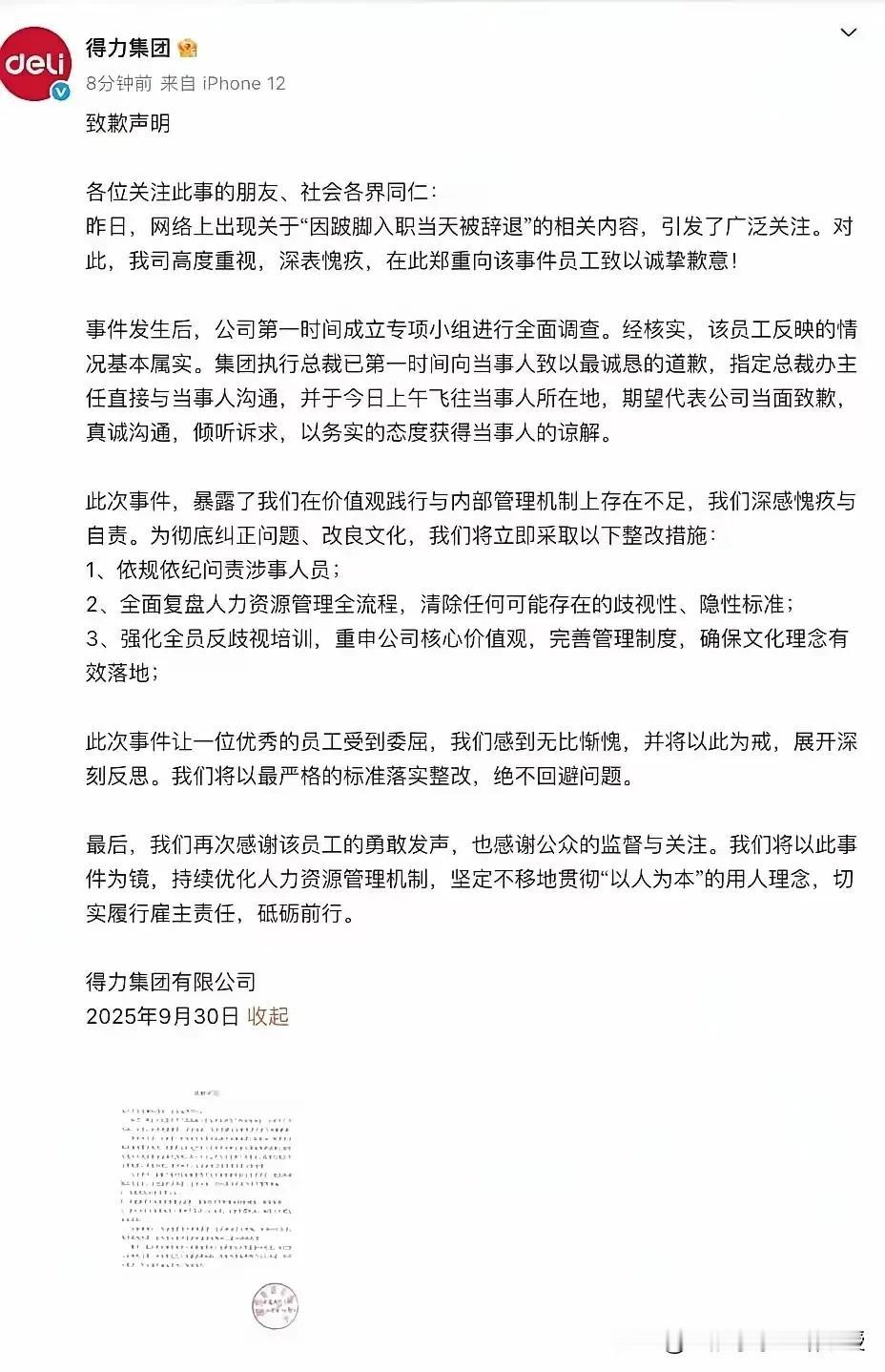 很多人说,得力卖了那么多笔,到现在却连“人”都写不好,跛脚女孩虽然走路不是不顺,但是她“不吃回头草”,“不是非他不可”的自信和从容,她今后的职场也一定会是一片坦途。 晨光抓住了这波流量,在直播间里说要给女孩工作机会,当你的人生路上有不“得力”的时候,前方还有一缕“晨光”照耀你。 得力此次对残疾人歧视的现象也凸显出目前残疾人就业的一个现状,残疾人就业不仅需要企业抛来的“橄榄枝”,更需要消除歧视、平等包容的就业大环境。