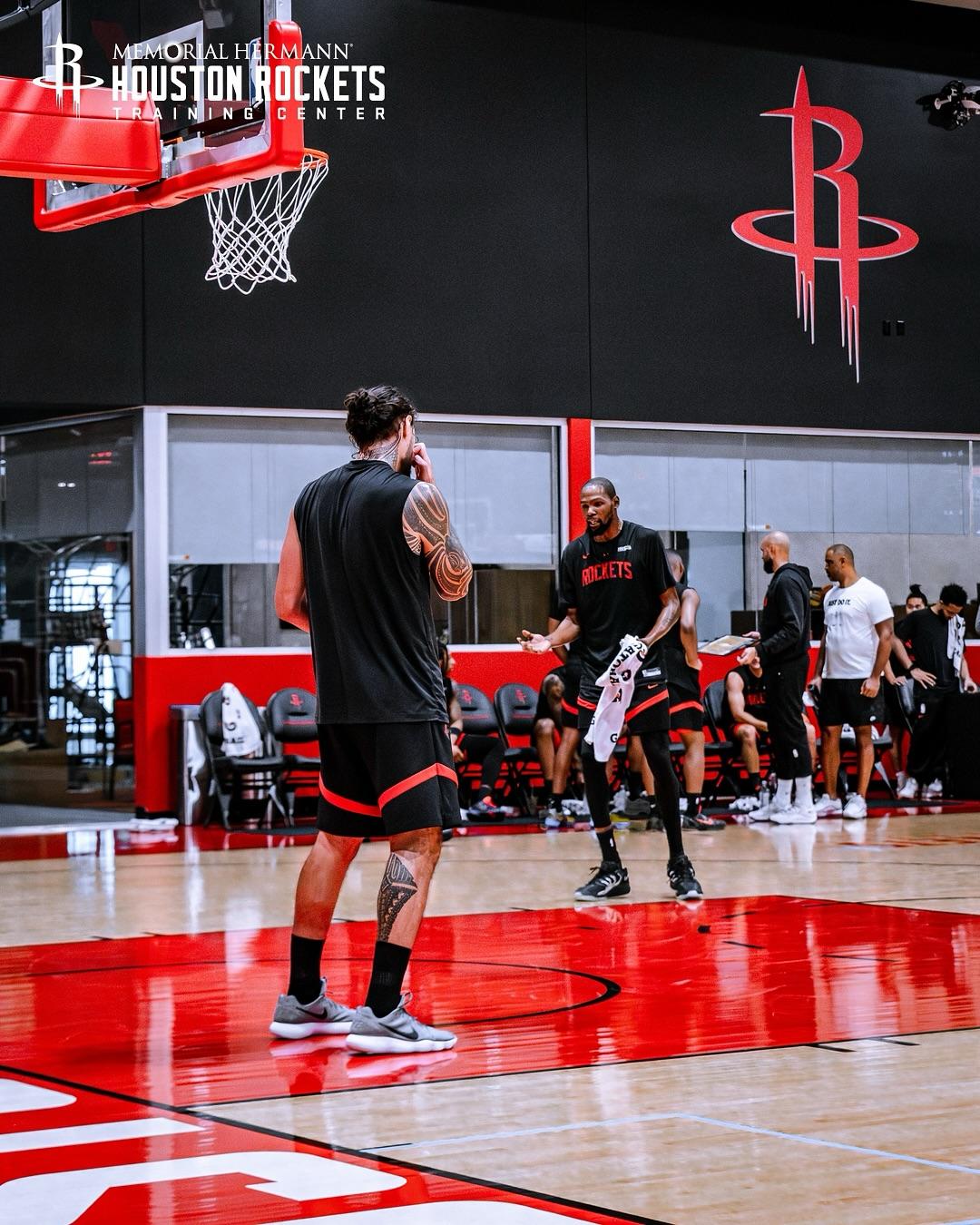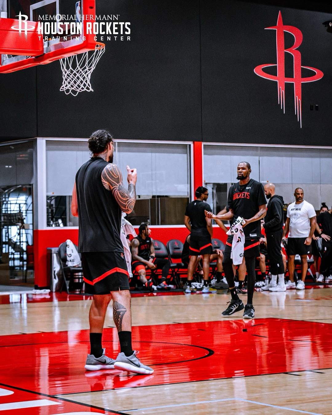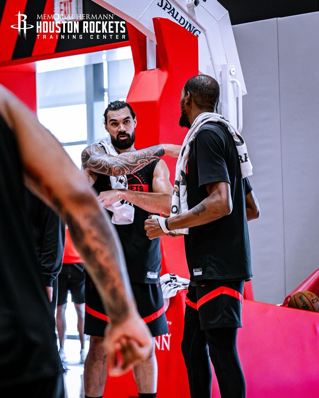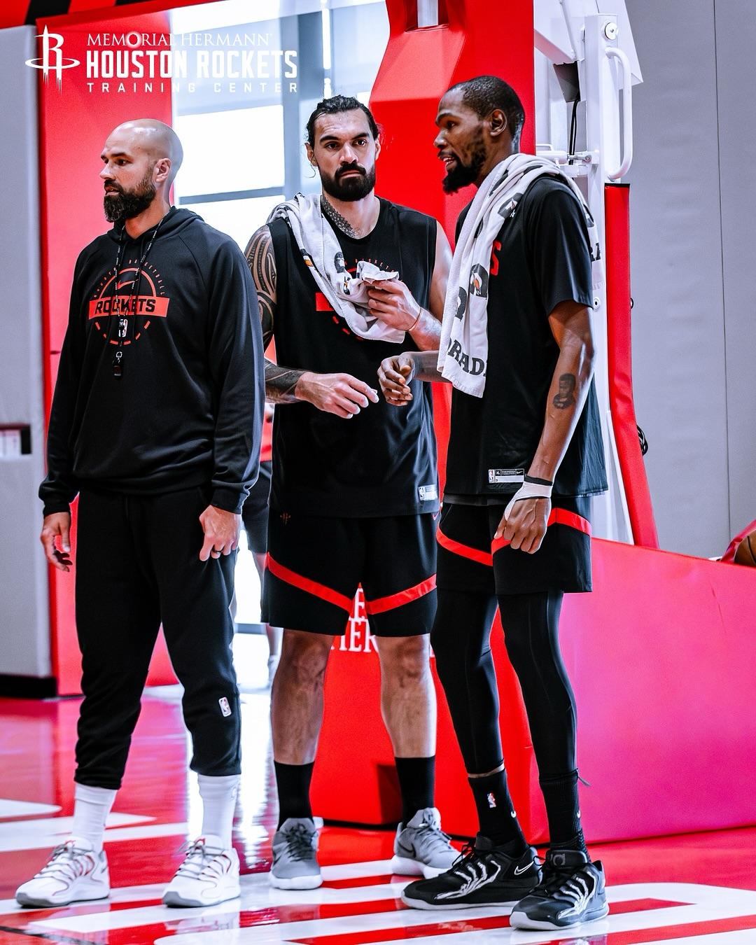亚特兰组合?火箭官方晒图:杜兰特与亚当斯正逐步磨合中
