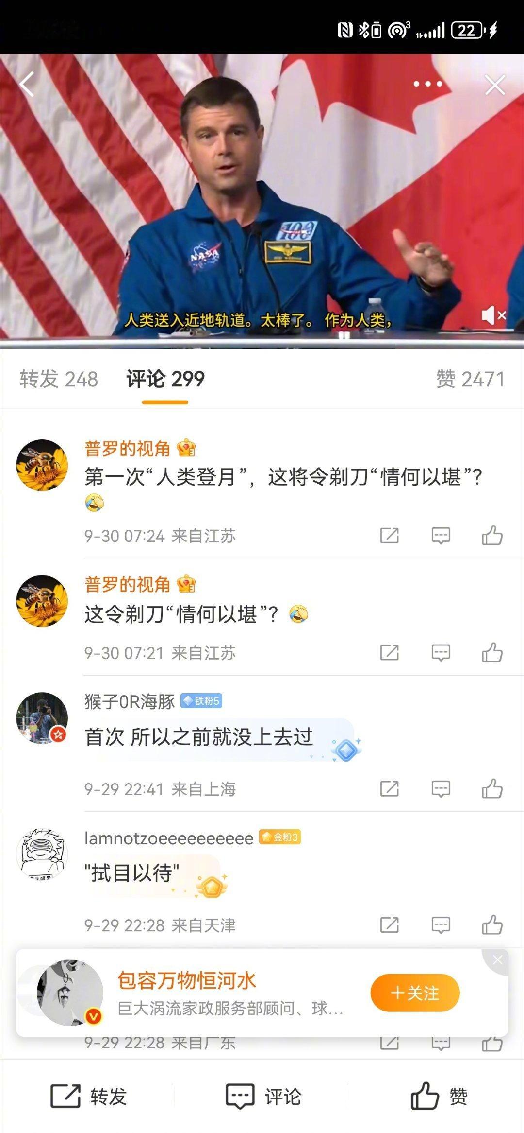 最近NASA的阿尔忒弥斯计划有了实验性进展,一周前开了一个美加宇航员合作发布会,宇航员称阿尔忒弥斯计划的首次登月即将举行。