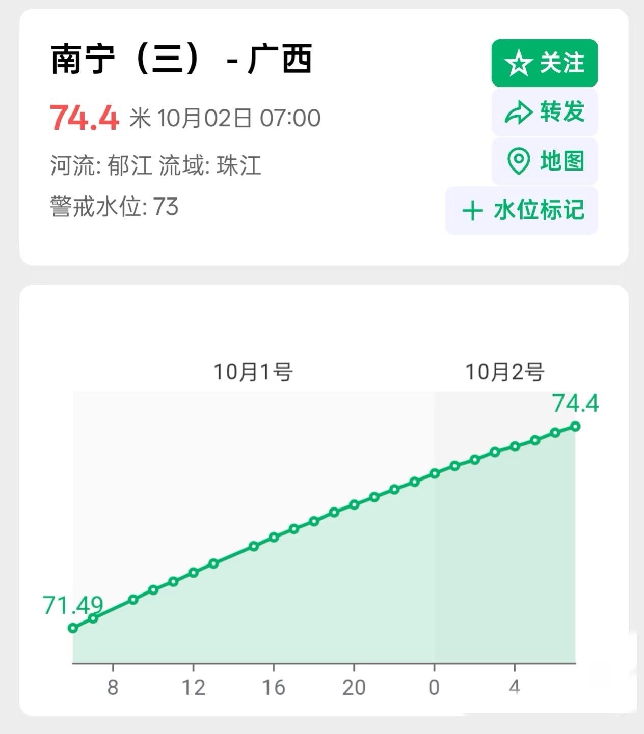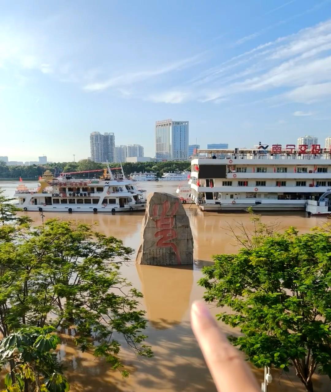 邕江水位估计今晚就到警戒水位(73米),已经淹到了民生广场的邕字碑。不巧看