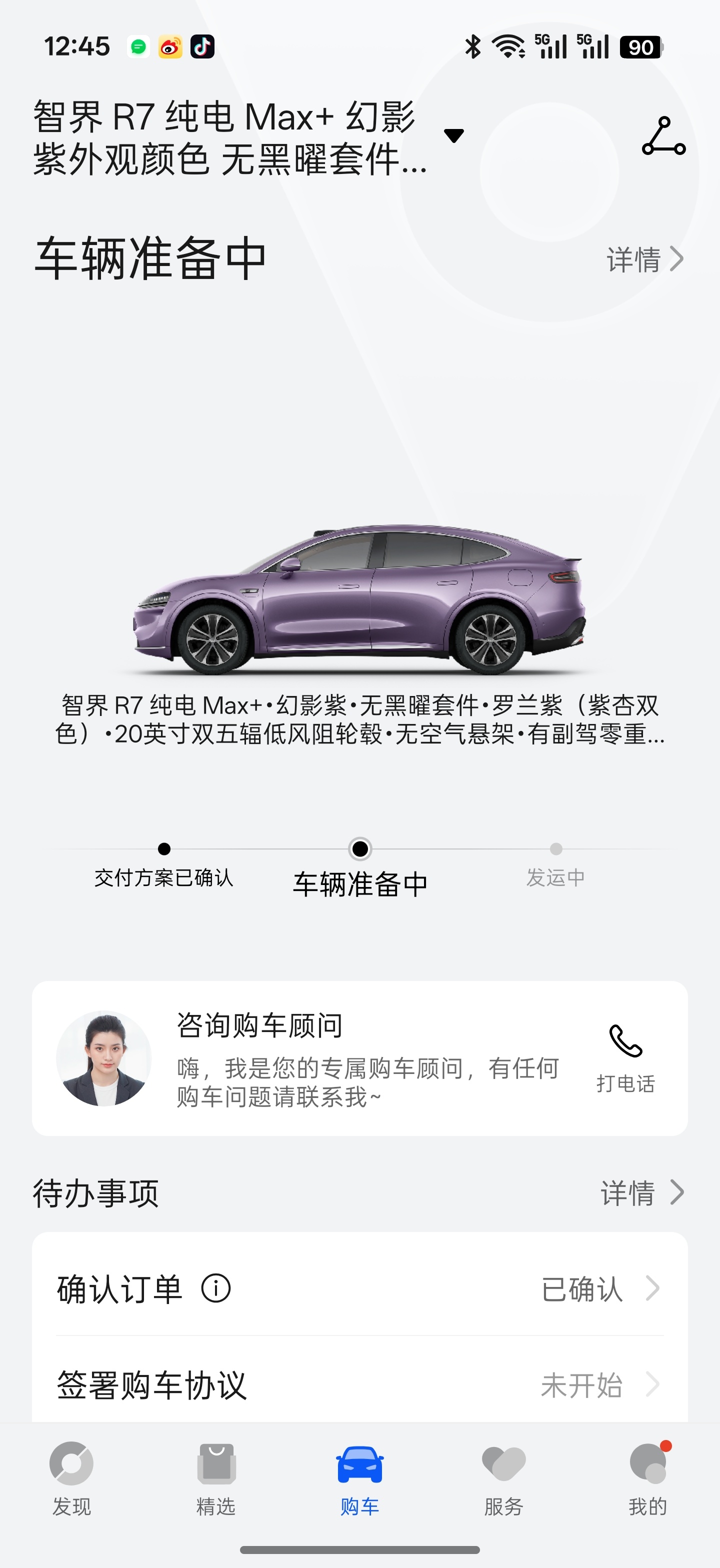 刚好前段时间也买了一辆她的同款新车车,颜色也是一样的紫色R7,但是我看刘亦菲开的好像还是老款的,方向盘上还没有智界的标!我这里刚好有一个,谁有刘亦菲的收件地址发我一个,我给她去寄!