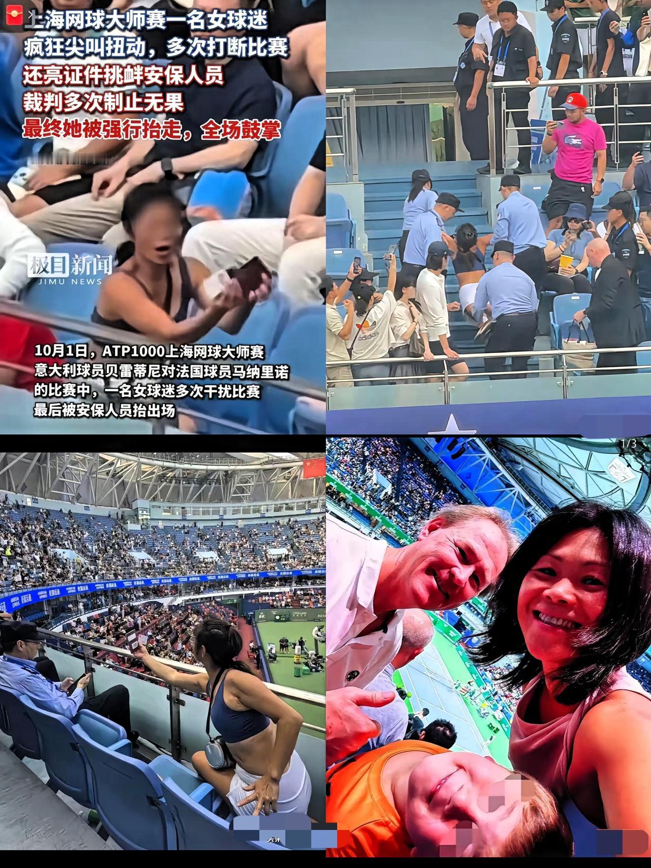 46岁的谢某某真是把“移民身份当特权”演成了笑话!二婚嫁瑞典人拿到永居,就敢在上海网球大师赛上撒野——喝了酒对着赛场疯狂尖叫,跪坐在椅子上挥着手挑衅,硬生生把比赛搅得暂停好几次。 工作人员劝了又劝,她倒好,仗着自己那点“外籍相关身份”更嚣张了,仿佛在说“你们管不着我”。结果呢?上海警方直接让安保把她抬出看台,该罚的一点没少,全程文明执法还特解气,在场观众都忍不住叫好。 说白了,她炫耀的哪里是身份,分明是没搞懂基本规矩。不管拿着哪国的居留证,在中国的地盘上,就得守中国的规矩,赛场安静观赛这点常识,跟身份半毛钱关系没有。 这种把“外籍相关身份”当“免作歹金牌”的人,就该这么治。你碰到过这种觉得“有身份就特殊”的人吗?