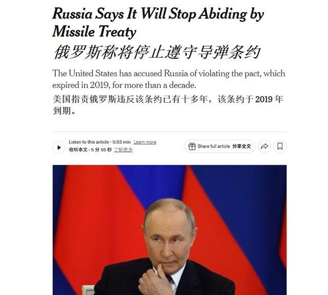 从中国借来的东风,给了俄罗斯人底气,苏联留下来的老镣铐,普京不想再戴了 俄罗斯外交部在2025年8月4日直接发声明,说不再单方面遵守中导条约了。这条约是1987年美苏签的,限制射程500到5500公里的陆基导弹,本来是为了缓和欧洲的军备竞赛。结果美国在2019年先退了,俄罗斯跟着暂停,现在干脆彻底不玩了。普京这步棋,明显是想摆脱苏联时代留下的那些限制,重新搞自己的导弹体系。俄罗斯的新导弹叫Oreshnik,榛树的意思,射程在3000到5500公里,能带核弹头,也能常规用。西方媒体分析,这东西基于RS-26 Rubezh导弹改的,之前测试过几次但没正式服役。现在缩短了助推级,成了中程弹道导弹。 俄罗斯说这导弹速度超10马赫,带多弹头,很难拦截。普京在公开场合说过,用几枚常规的就能比核弹还猛。俄罗斯这几年在导弹上花了不少功夫,Oreshnik就是他们最新的成果。西方情报说,这导弹去年11月21日第一次实战,用在乌克兰的Dnipro一个工厂上,那地方以前是苏联导弹厂。发射后,乌克兰那边报导说爆炸持续了几个小时,但美方评估是用了假弹头,没啥大破坏,就为了测试和威慑。俄罗斯军方强调,这导弹机动性强,用轮式发射车,能快速转移。普京和白俄罗斯总统卢卡申科在2025年8月1日会面时,说已经选好部署点,就在白俄罗斯境内。白俄罗斯离乌克兰边境近,离北约国家也只有一步之遥,这部署一放,欧洲就得紧张了。 北约那边回应,说会加强防御,美国已经在欧洲加码导弹系统。俄罗斯为啥敢这么干?一方面,美国退约后,他们觉得没必要再忍着。普京从上台就强调国家主权,不想被老条约绑手绑脚。苏联解体后,俄罗斯经济一度低迷,但石油钱进来后,军队现代化起步了。普京推动导弹研发,Oreshnik就是这波的一部分。西方报道说,俄罗斯生产这导弹还用到了德国和日本的机床设备,尽管有制裁,但通过渠道还是进来了。 俄罗斯公司招聘广告里明说要熟悉Siemens和Fanuc系统的人。金融时报分析,今年以来至少300万美元的设备流进俄罗斯,帮着军工生产。俄罗斯导弹工厂像Moscow Institute for Thermal Technology和Sozvezdie,都在用这些外国技术。普京这人,从情报背景起家,一步步爬到顶,处理国际事总喜欢硬碰硬。Oreshnik部署白俄罗斯,不是随便选的,那地方战略位置好,能覆盖欧洲大片区域。俄罗斯媒体放出图,说从白俄罗斯发射,11分钟到波兰空军基地,17分钟到北约总部布鲁塞尔。这就是在给西方施压。俄罗斯说,这是回应北约扩张和乌克兰用西方武器打俄罗斯本土。普京去年底就和卢卡申科签协议,把白俄罗斯拉进俄罗斯核保护伞。