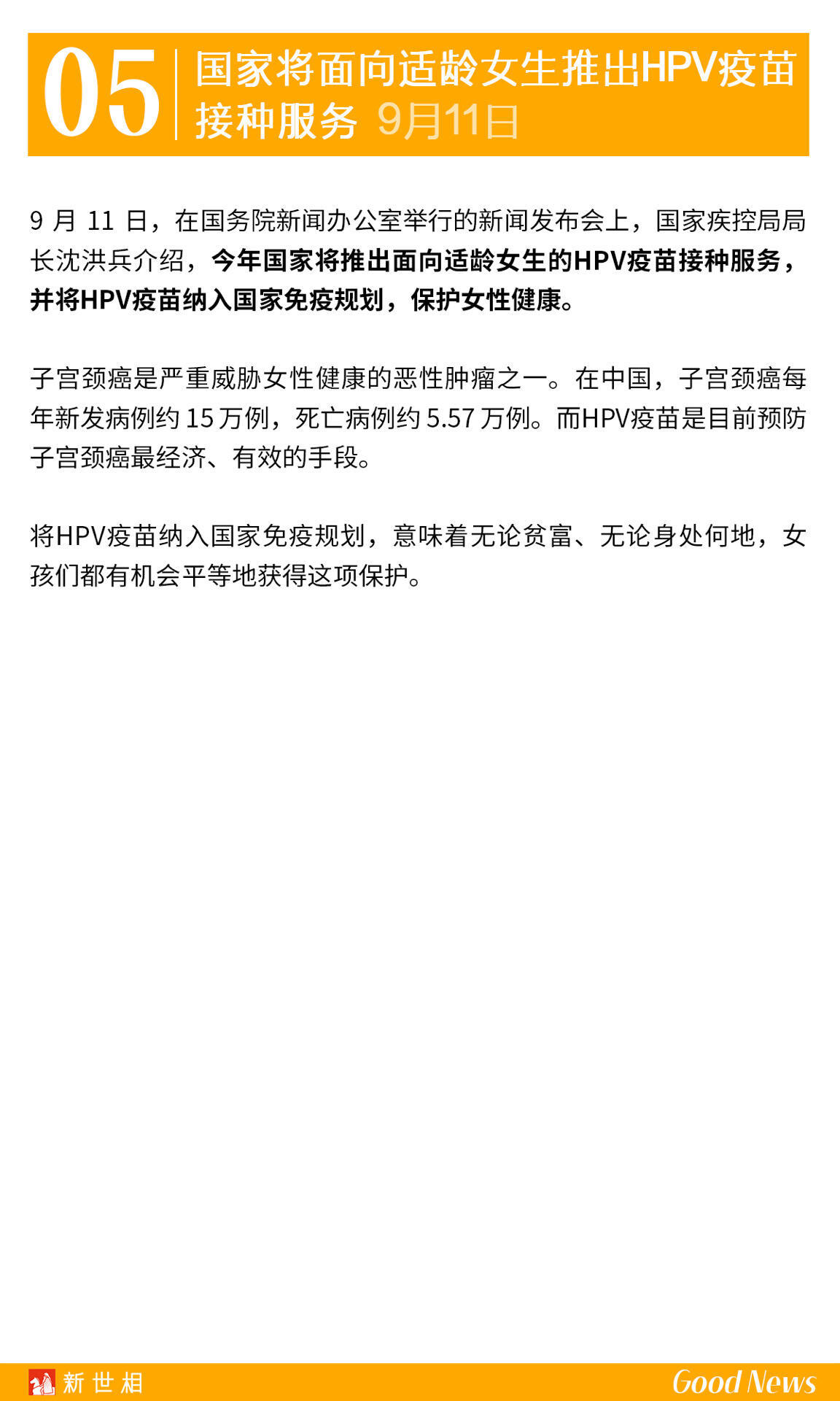 5.国家将面向适龄女生推出HPV疫苗接种服务