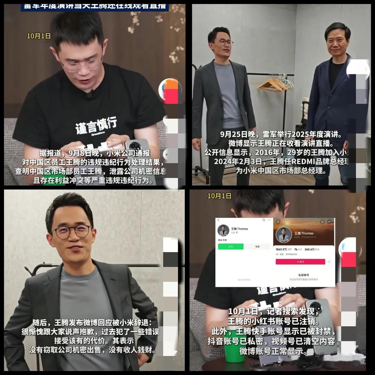 这下真的是彻底“凉凉”了, 王腾多平台账号不是注销就是设为私密, 看来是彻底放弃互联网这条路了! 近日,有消息发布称,王腾小红书账号已经注销,快手账号被封禁,抖音号已设为私密,视频号已清空内容,只剩微博账号显示正常! 王腾9月25日还在直播间看了小米17系列的发布会,现在就已经开始“退网”了,这一举动也引发了网友的猜测! 有网友说,“大帝之姿”的王腾这是要退出互联网这条路了吗? 也有网友表示,人家只是想静静了,不是微博账号还正常吗?也许以后当个博主也挺不错哦! 华中科大毕业的王腾,一路从OPPO到小米,深耕手机领域十数载,如果就此落幕,确实有点浪费了! 人无完人,金无足赤。谁还没犯过错呢,知错能改,善莫大焉。还是希望他能够振作起来,继续发挥自己的才能吧! 大家觉得呢?王腾 redmi王腾