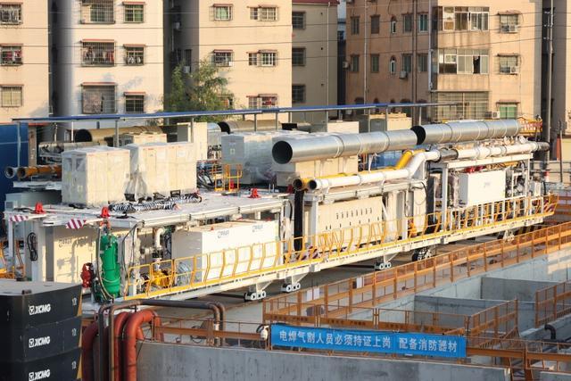 为解决小半径、大坡度、长距离掘进的难题,广州地铁联合施工单位中建四局选用盾体为前大后小梭式结构的盾构机,缩短盾构机主机长度、增大刀盘开挖直径、缩短管片长度,以适用于小曲线、长距离掘进的工况。