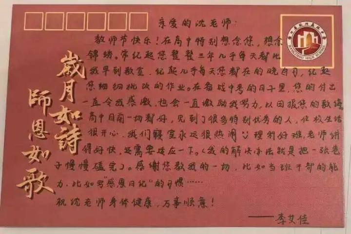 今年教师节前,有好几位已经在重高就读的毕业生,专门给沈老师写信,送上祝福。
