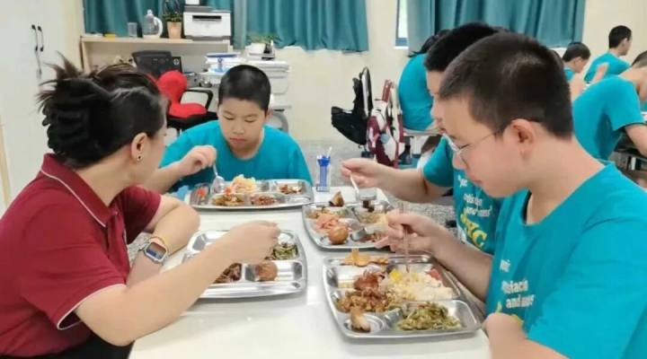 中午吃饭时,寿老师也不放松。学校要求学生每顿饭要打全8道菜,这样营养更均衡,她的眼睛就盯牢同学们的餐盘,对于没打足菜的同学,经常提醒。一学期下来,几乎所有孩子都和她同桌吃过饭,边吃边聊,师生关系越来越好。