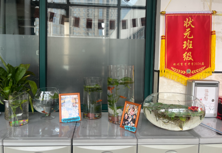 陈老师今年带初三,看到课间同学们总坐在座位上懒得动。她灵机一动,买来一批小鱼,水面上再放上莲花。这下一到课间,教室里就很热闹,大家忙着去给鱼换水、喂食,说说笑笑,很是轻松。
