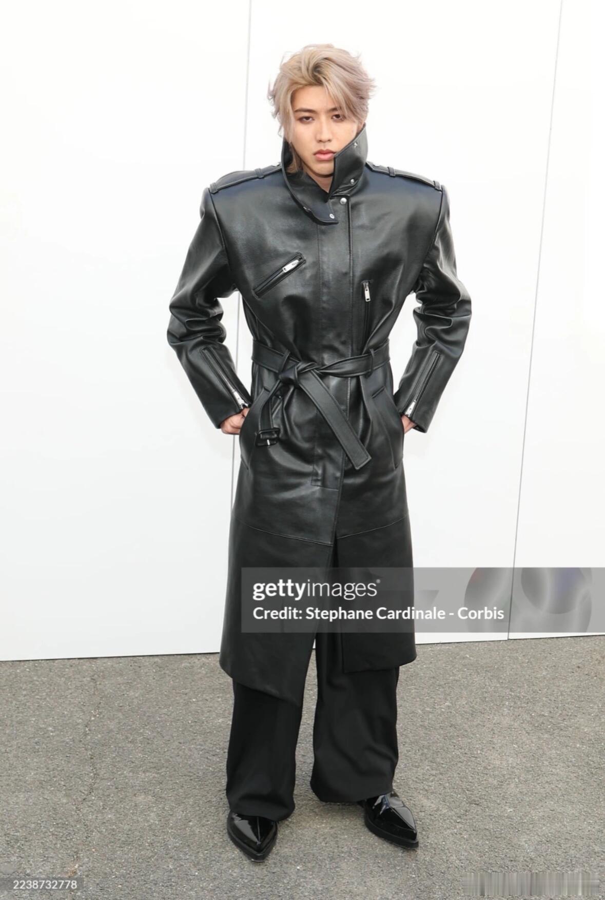 蔡徐坤出席Mugler2026春夏大秀,一身廓形皮衣亮相