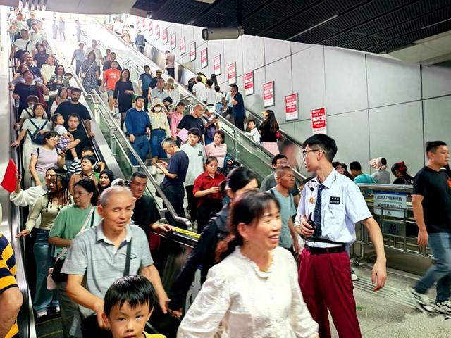 国庆期间,市区重要景点、商圈站附近地铁车站客流较为集中,相关车站已制定好预案,准备好充足物资和人员保障,全力保障八方游客、全市居民游玩出行途中安心、顺畅。