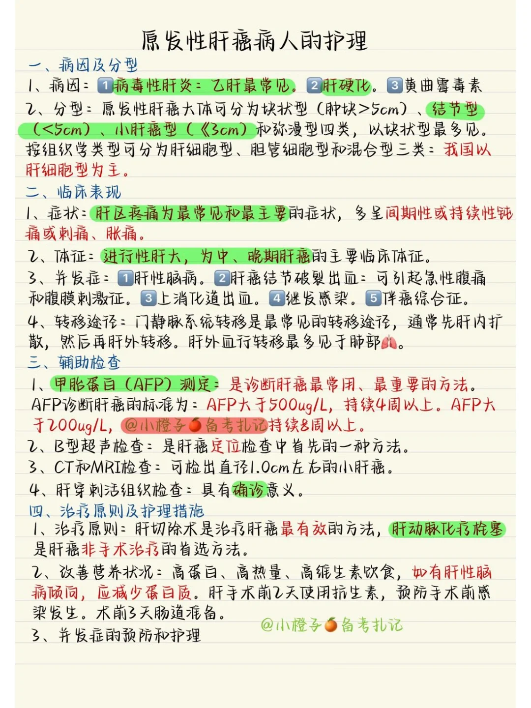 🌟今日笔记分享原发性肝癌病人的护理🙋