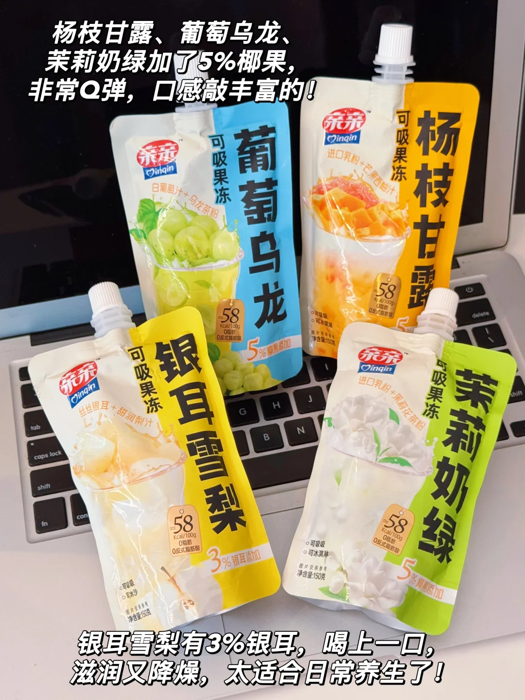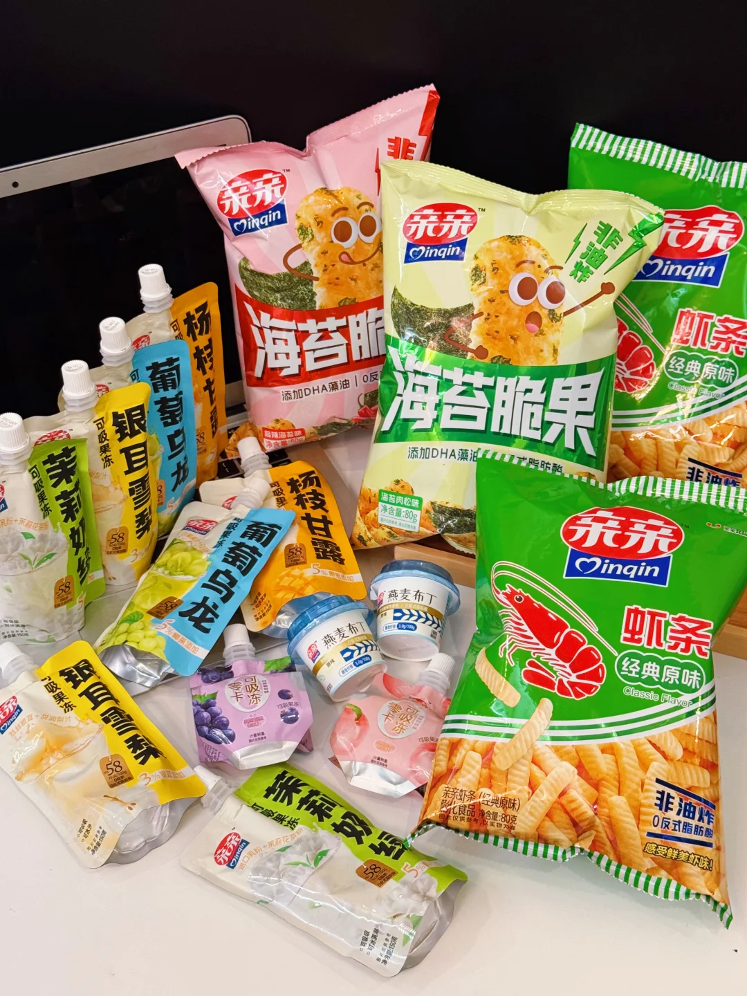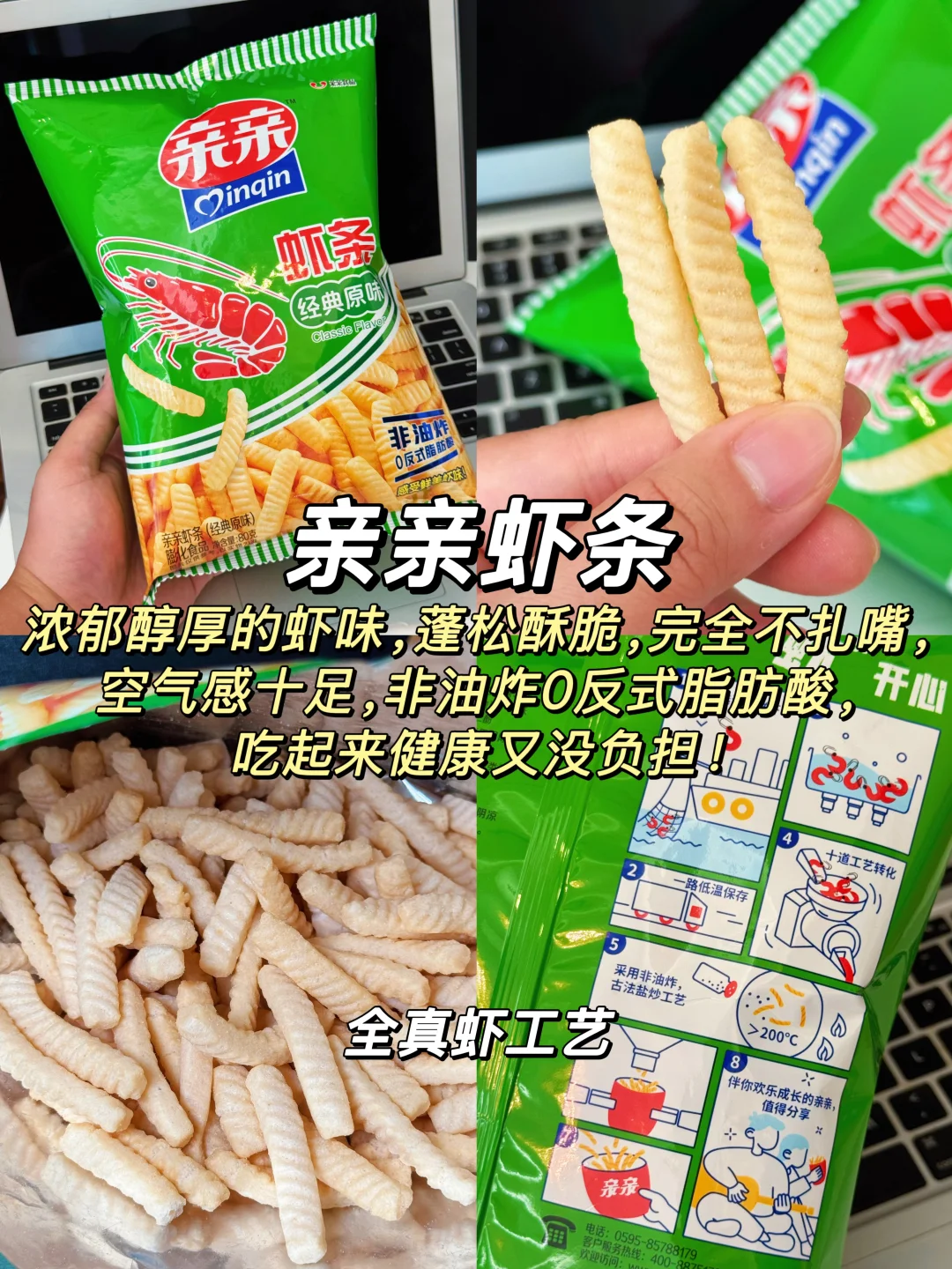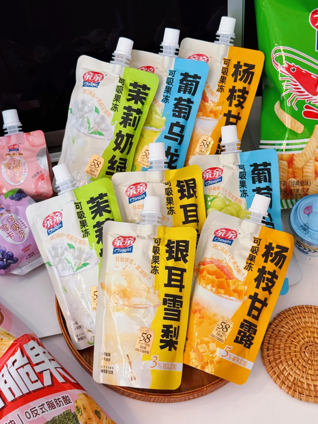 家人们谁懂啊!亲亲虾条简直是我的童年白月光, 小时候做梦都想抱着吃个够!没想到现在还有超多种类, 我就一口气买了各种亲亲零食回来试一试! ✔️这次特别喜欢这款茶饮风味可吸果冻,真的太清爽了! 里面有超多汁水和椰果,嚼起来超过瘾。 0脂肪0反式脂肪酸,每100g才58Kcal ,管理期也可以放心炫无负担, 小巧的吸吸包装,小朋友吃起来方便又安全, 平时揣包里随时随地都能来上一口,太方便了! 杨枝甘露、葡萄乌龙、茉莉奶绿里加了5%椰果,非常Q弹,口感敲丰富的! 银耳雪梨有3%银耳,喝上一口,滋润又降燥,太适合日常养生了! 而且我发现更好玩的,还可以把果冻冻成冰沙,一下子就解锁敲多好玩吃法,好过瘾~ ✔️还有真0卡的零卡可吸冻,添加了胶原蛋白肽和维生素e,果冻QQ弹弹的,甜度刚刚好,有时候我饿了或者嘴巴馋了,就吸上一包,完全没有热量负担。 ✔️燕麦布丁,口感Q弹爽滑,奶味浓郁,还有股淡淡的燕麦香,双重口感超惊喜。每100克就含有3克膳食纤维,健康又美味,下午茶吃这个真的太合适啦! ✔️我真的超爱亲亲虾条!刚打开包装,浓郁醇厚的虾味扑鼻而来,吃起来蓬松酥脆,完全不扎嘴,一口下去全是空气感,用的是真虾,完全没有那种廉价感,像这种非油炸0反式脂肪酸,吃起来健康又没负担,好解馋,吃起来真的停不下来! ✔️海苔脆果里面是真的有海苔碎,咸甜交织的口感,海苔肉松口味伴随着浓郁的肉松香气,关键是非油炸工艺的一点都不油。喜欢辣的也可以试试麻辣海苔味的,外面裹满了海苔,又香又辣,每一口都超级满足。