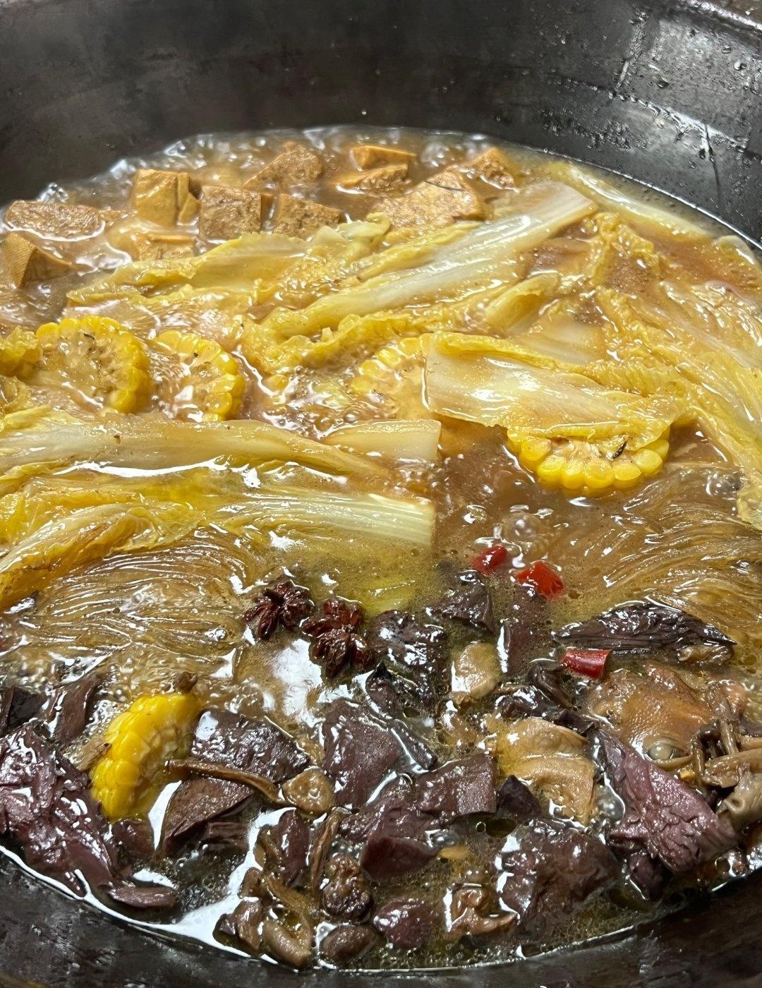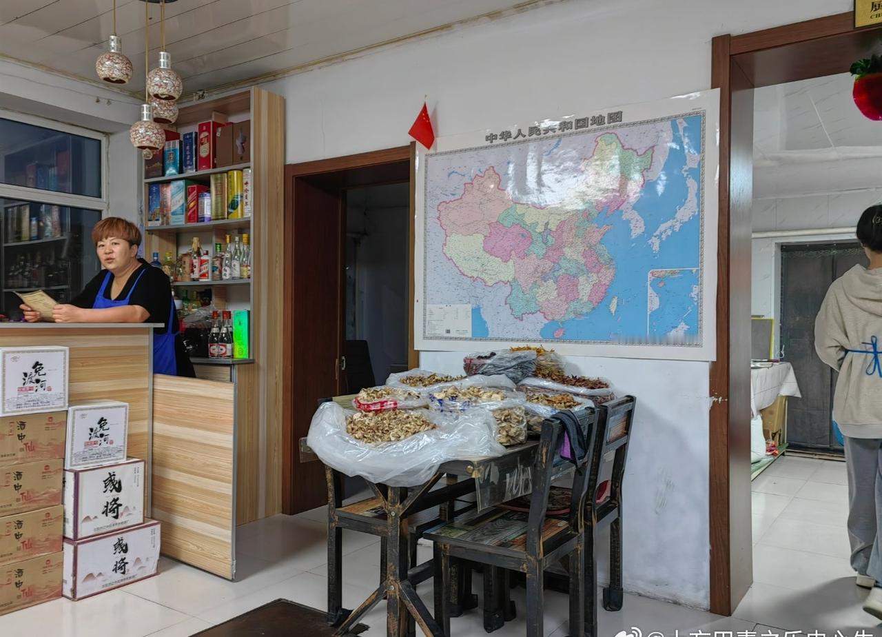驱车两小时 一路伴随落日来到了红花基地樟子松国家森林公园附近 小鸡炖蘑菇 可鲜了 车到店门口 看看周遭的环境 大家傻眼了 这店能吃吗 但是大众点评有打分一定有群众 店里大姐说这边大概一共就5000多人 一半林业局工作 一些牧民 一些个体 小孩都去海拉尔读书了 这里冬天实在冷到零下40度的时候就歇业一个月左右 不然持续有来来往往阿尔山的客人 菜价比想象中贵 小孩过敏 想着有没有适合的菜品 大家说做一个西兰花肉片胡萝卜🥕给她吃 我们想着挺好 然后看到西兰花🥦冷冻的 聊到了西贝 大姐对着下桌客人马上说这里没有预制菜 我感觉大意了