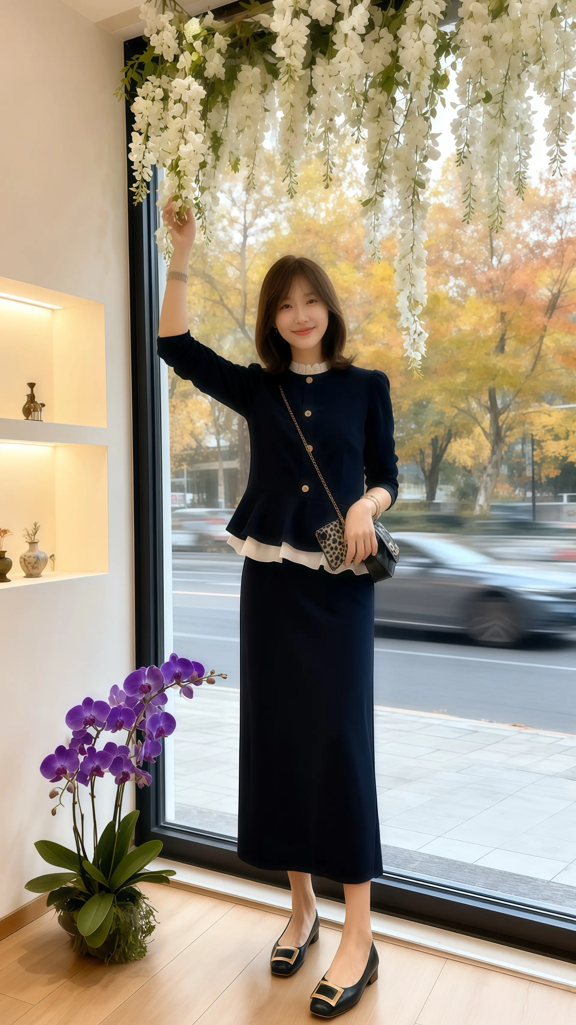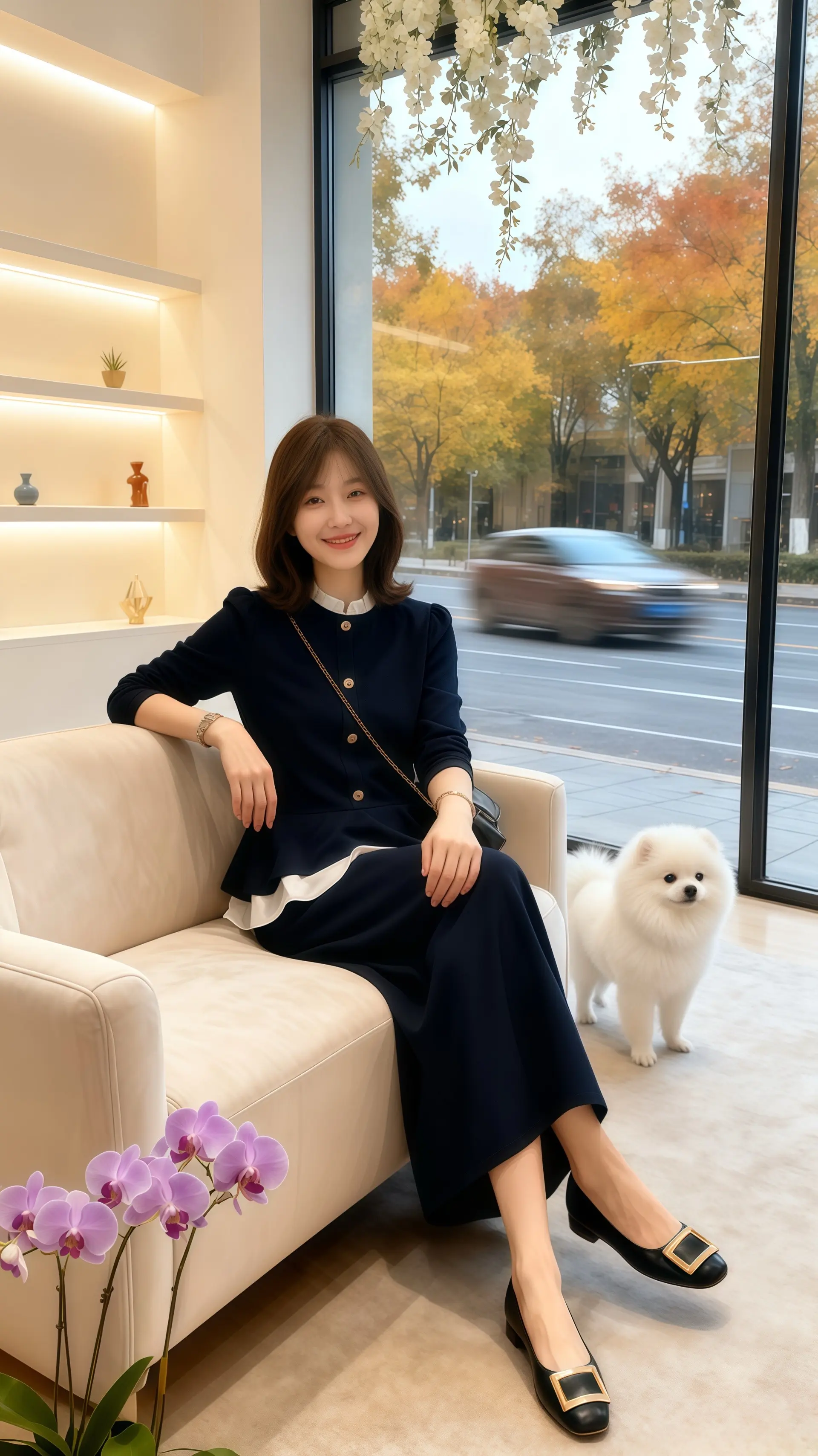 她穿着高级感气质连衣裙,荷叶边裙摆随微风轻漾,勾勒出恰到好处的显瘦曲线。窗外,秋阳将梧桐叶染成焦糖色,光影透过落地窗,在裙身投下温柔斑驳的印记。指尖轻抚过裙摆的细腻肌理,目光漫向窗外缓缓飘落的枯叶,时光仿佛在此刻慢了下来。一件裙子,一间洒满阳光的屋,一场不被打扰的秋日独处,将优雅与慵懒完美融合,这便是属于秋日的高级氛围感。