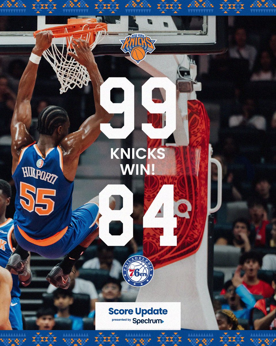虎扑10月03日讯今日,季前赛尼克斯99-86战胜76人。