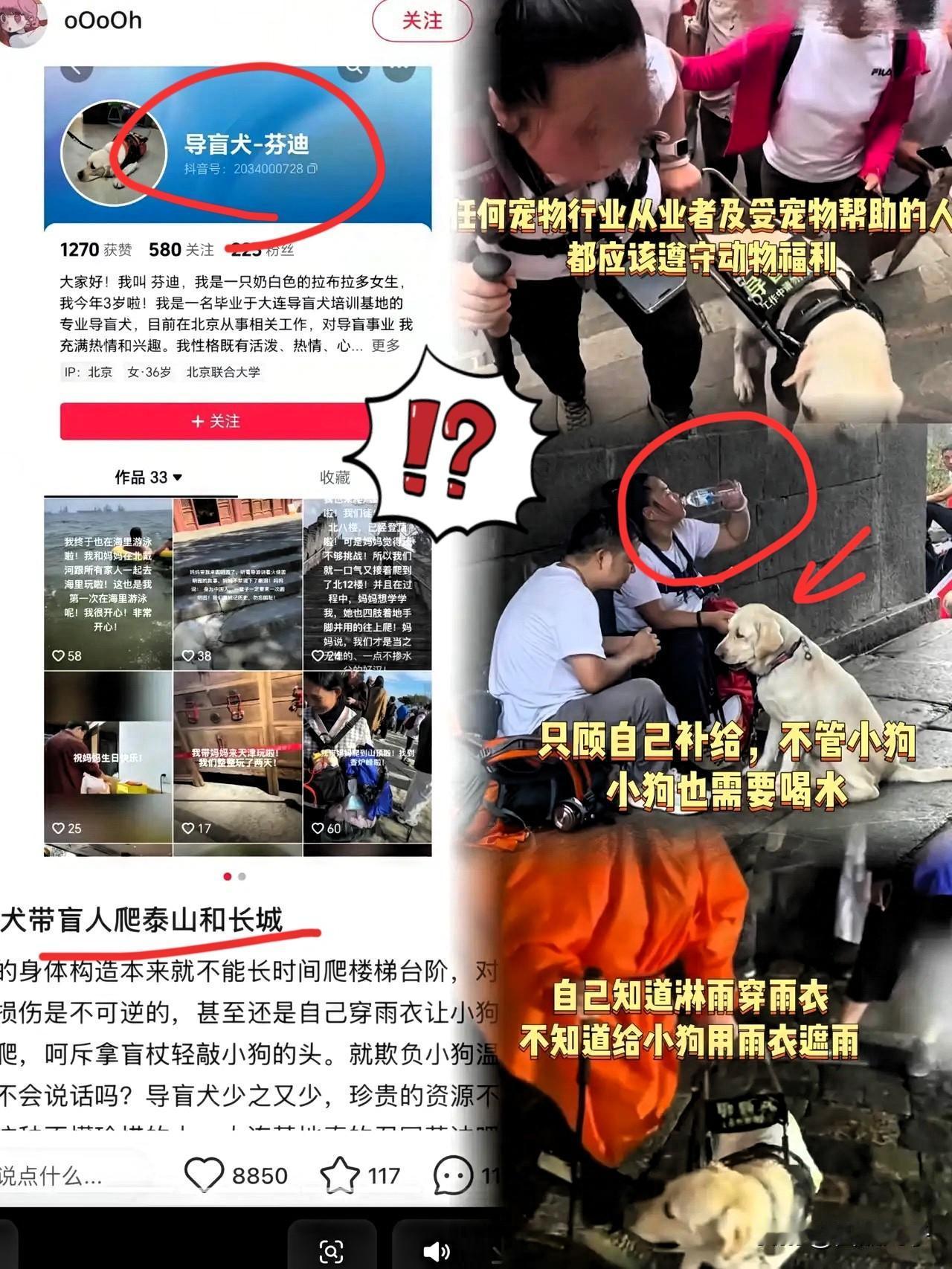 爬泰山'导盲犬风波'又有新后续! 王女士失业后被迫回吉林老家,委屈到要上残联维权——她觉得自己明明'掏心掏肺'对芬迪,却被网友骂到'社死'。 芬迪被基地接走时头也不回,养狗的都懂,这是累透了、寒心了。王女士说备了水和垫子,但拉布拉多关节脆弱,泰山6700多级台阶走17小时,这哪是带它看世,这是把“眼睛”当登山工具用。 真不是苛责,视障人士想爬山没错,但爱从来不是“我觉得好”,而是懂它能不能承受。导盲犬是伙伴不是装备,自我感动的“付出”,对它来说是伤害。 芬迪的'头也不回',到底是导盲犬的专业,还是积压已久的委屈?评论区聊聊,别让'爱'成了伤害的借口~