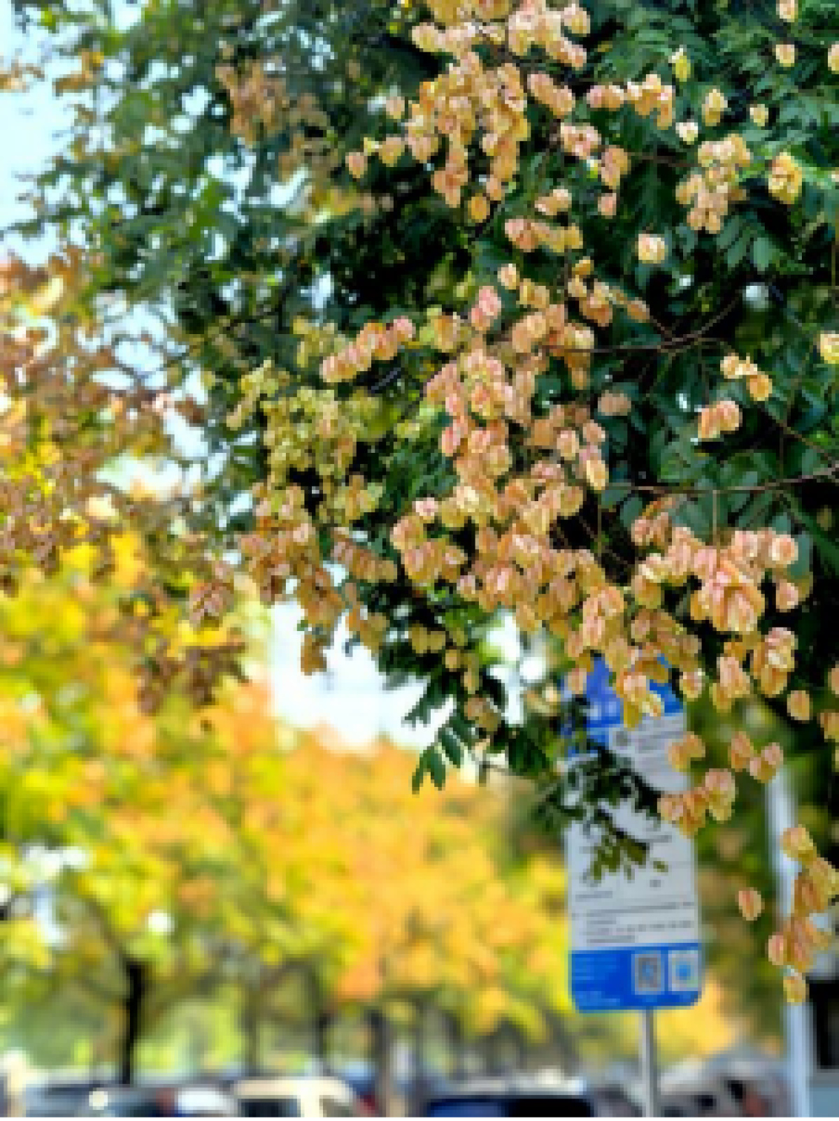 林科路的栾树藏着秋的惊喜,秋日的温柔与绚烂,写在了每条街巷里。