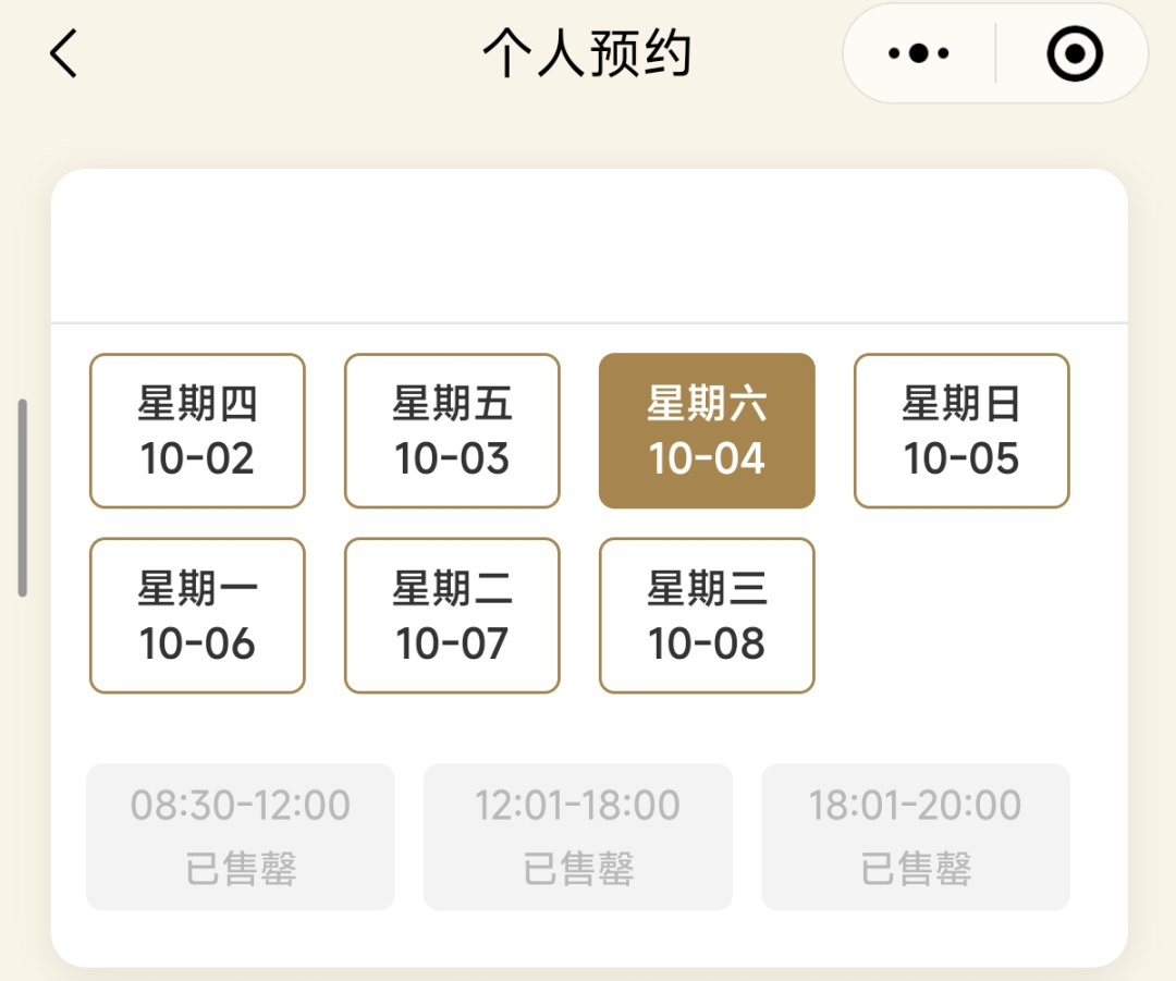 截至发稿时,三星堆博物馆10月3日-7日全时段门票售罄,10月8日仅剩18:01-20:00时段还有余票。