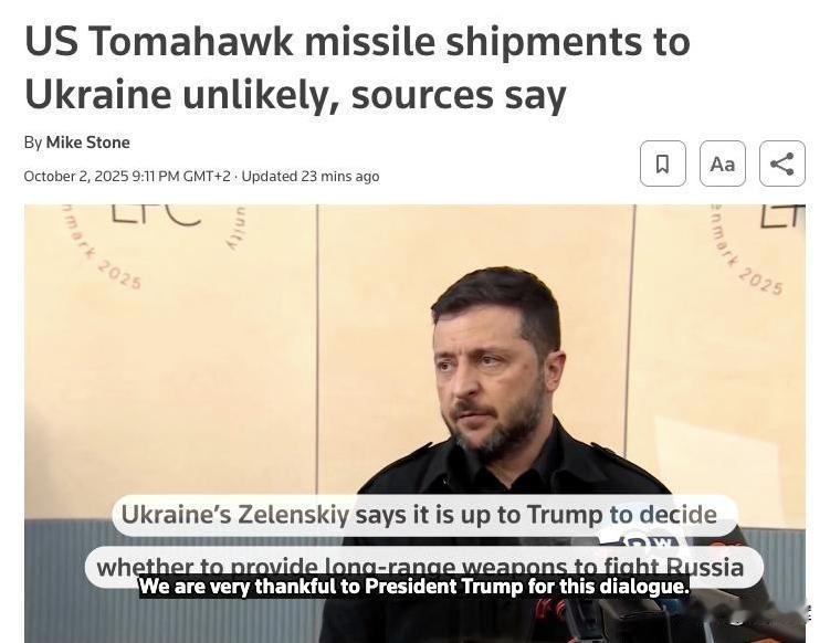 【外媒:基辅可能会获得“战斧”以外的射程较短的远程武器系统】 10月2日,路透社援引华盛顿消息人士称向乌克兰供应“战斧”导弹可能性较低 据该通讯社消息人士透露,特朗普政府向乌克兰提供远程“战斧”导弹的意愿可能难以实现,因为现有库存专供美国海军及其他用途。 这则消息几乎紧随着普京的声明出现——他2日在瓦尔代论坛上表示,将把向乌克兰提供此类导弹的行为视为“新一轮升级阶段”。 与此同时,一位美国官员指出目前并不存在“战斧”导弹的短缺问题,但暗示基辅可能会获得其他射程较短的远程武器系统。