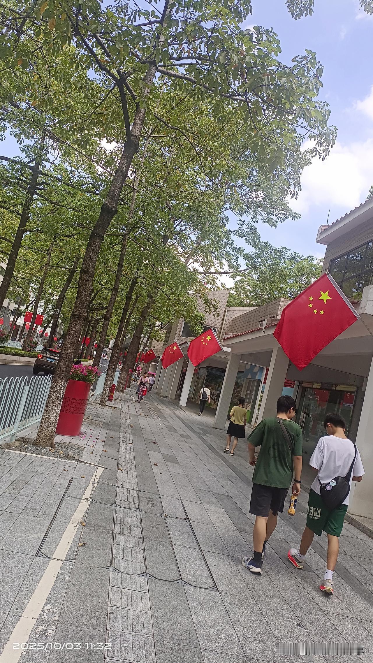 国庆放假第四天,一起来看看广州越秀区,越秀区街景实拍图分享,拍摄于2025.10.3上午 鲜艳的五星红旗到处可见,这里感觉到了浓浓的国庆气氛,除了五星红旗还有“庆祝国庆”等字样。 越秀区作为广州的老城区,岭南文化色彩浓厚,同时也兼容了许多外来文化。越秀区景点 广州城市一角