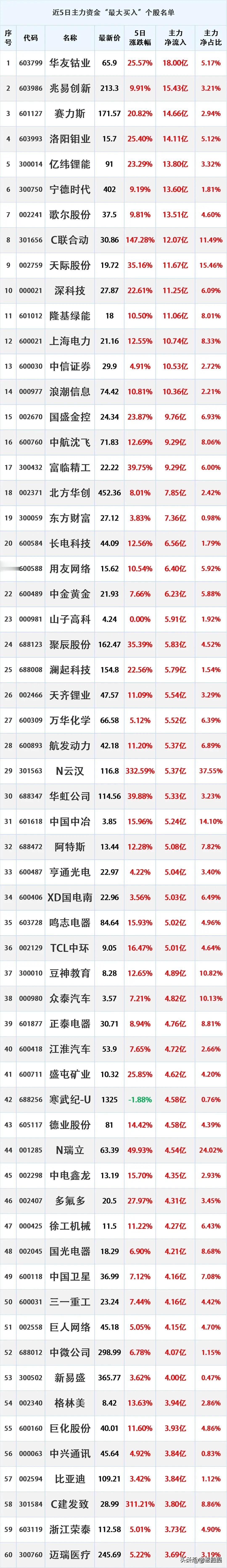 主力持股过节,放假前5天主力资金大幅流入的股票名单。 资金流入是指在一定时期内